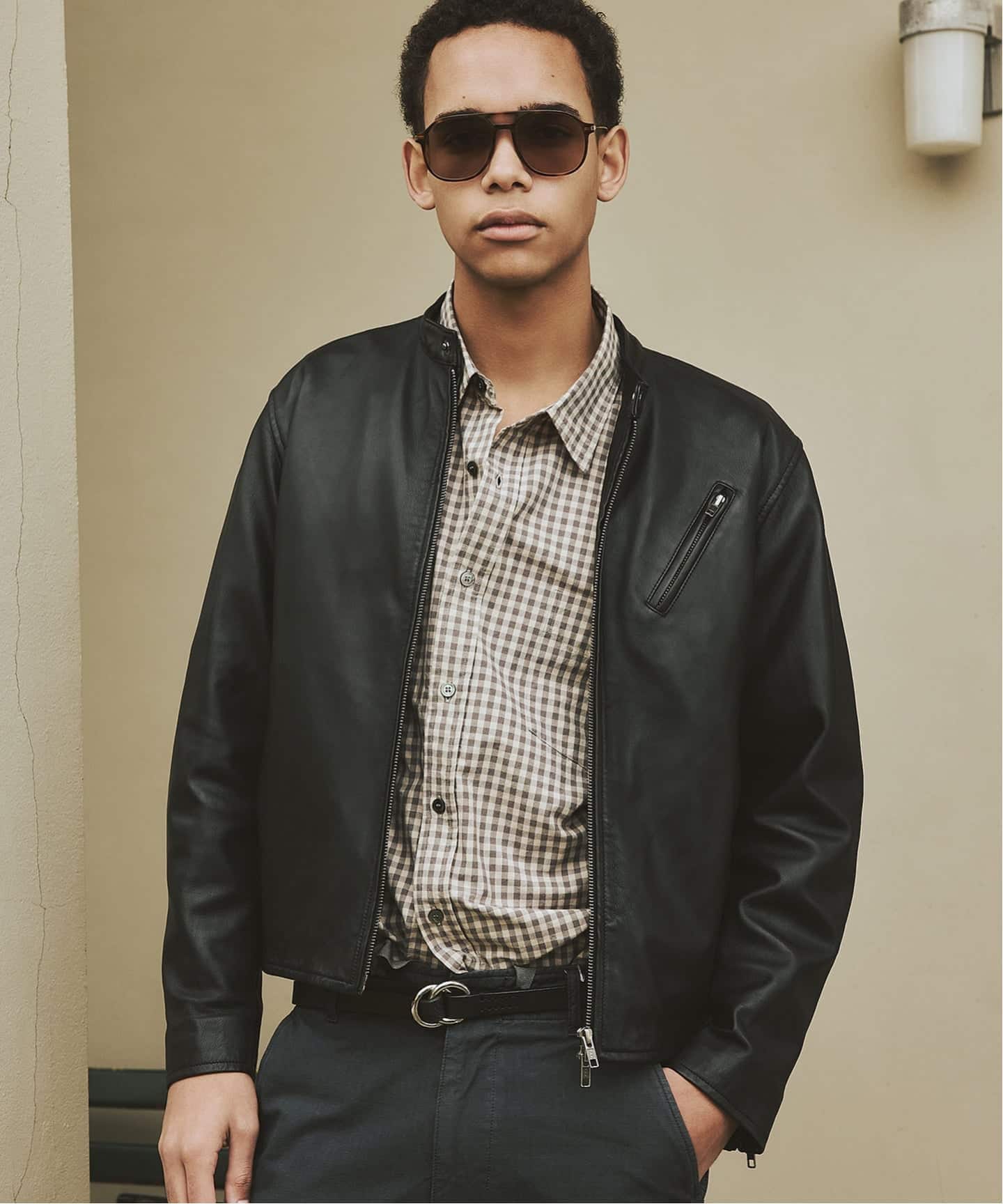 コーディネートをぐっと引き締めてくれる、主役級のレザーブルゾン。