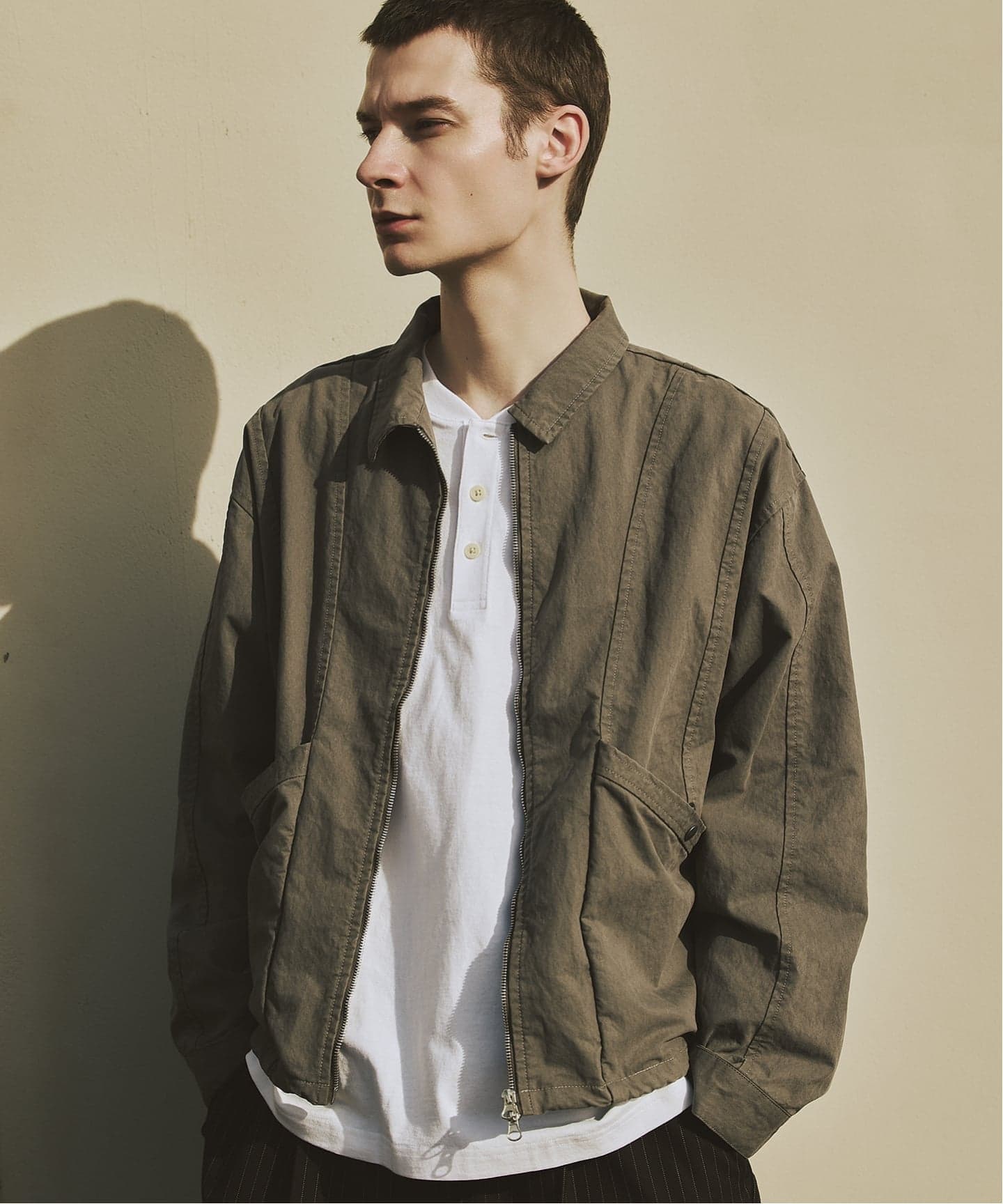 ワークジャケットをベースに、今のバランスで再構築したショート丈のブルゾン。
