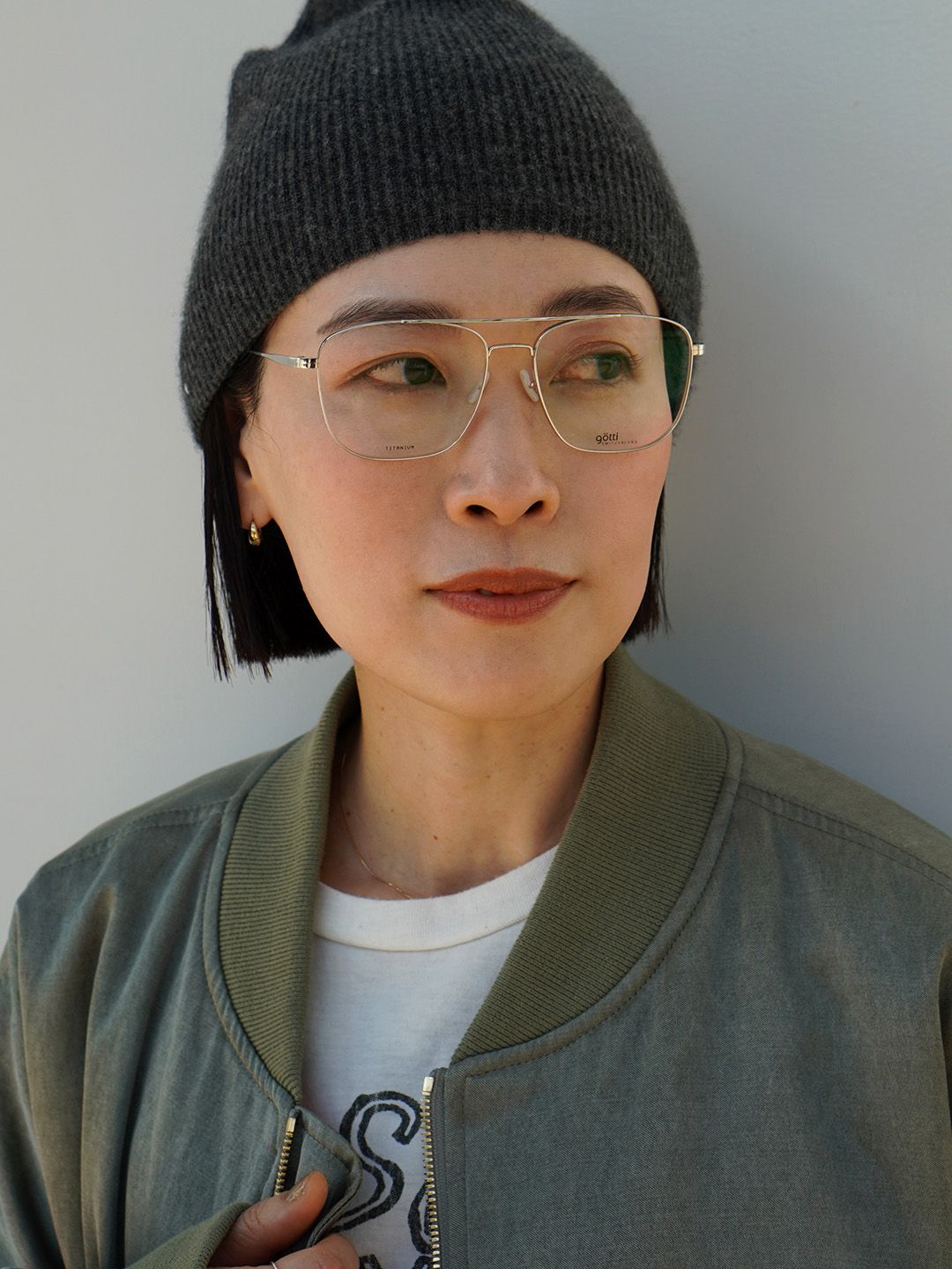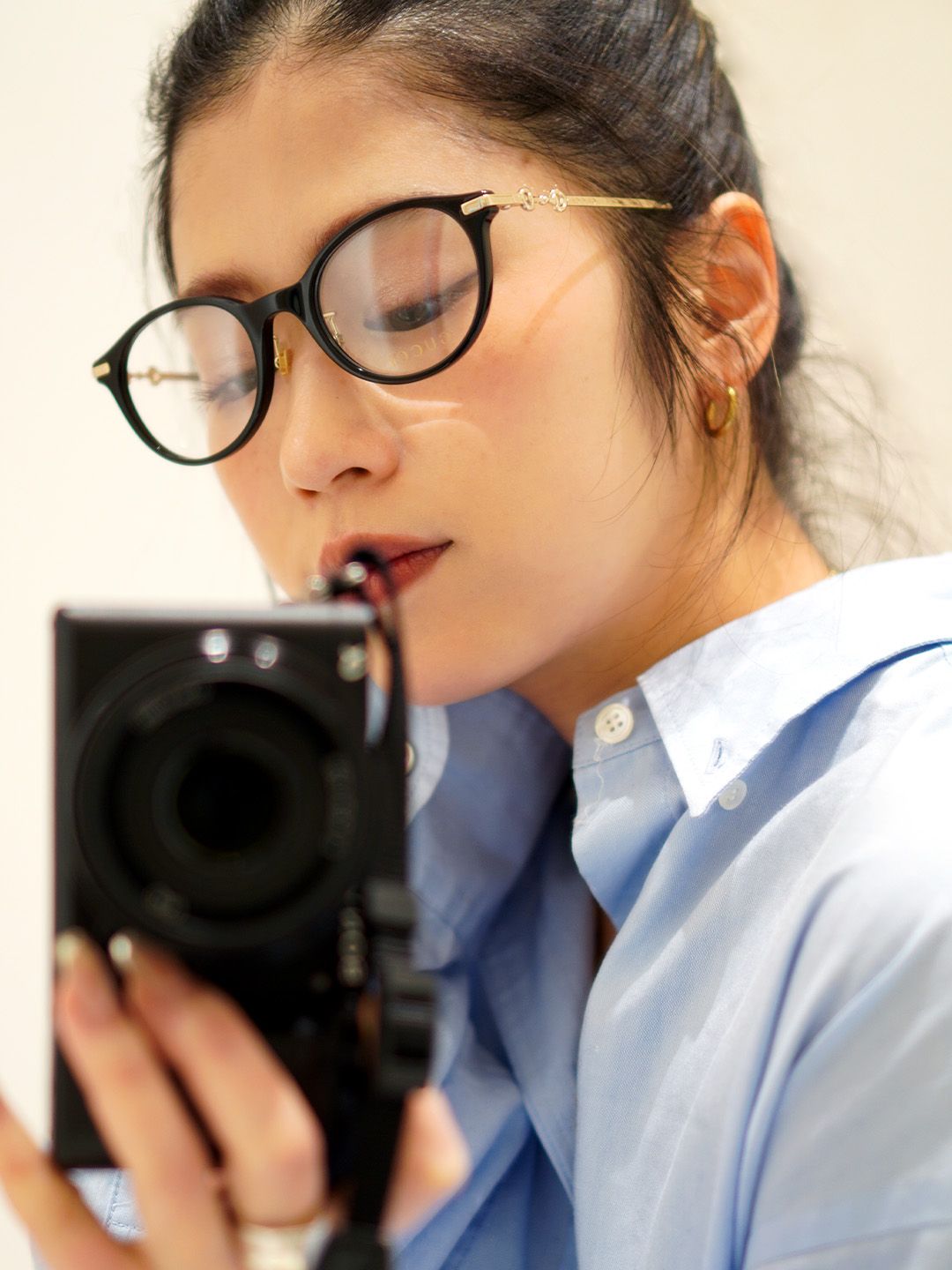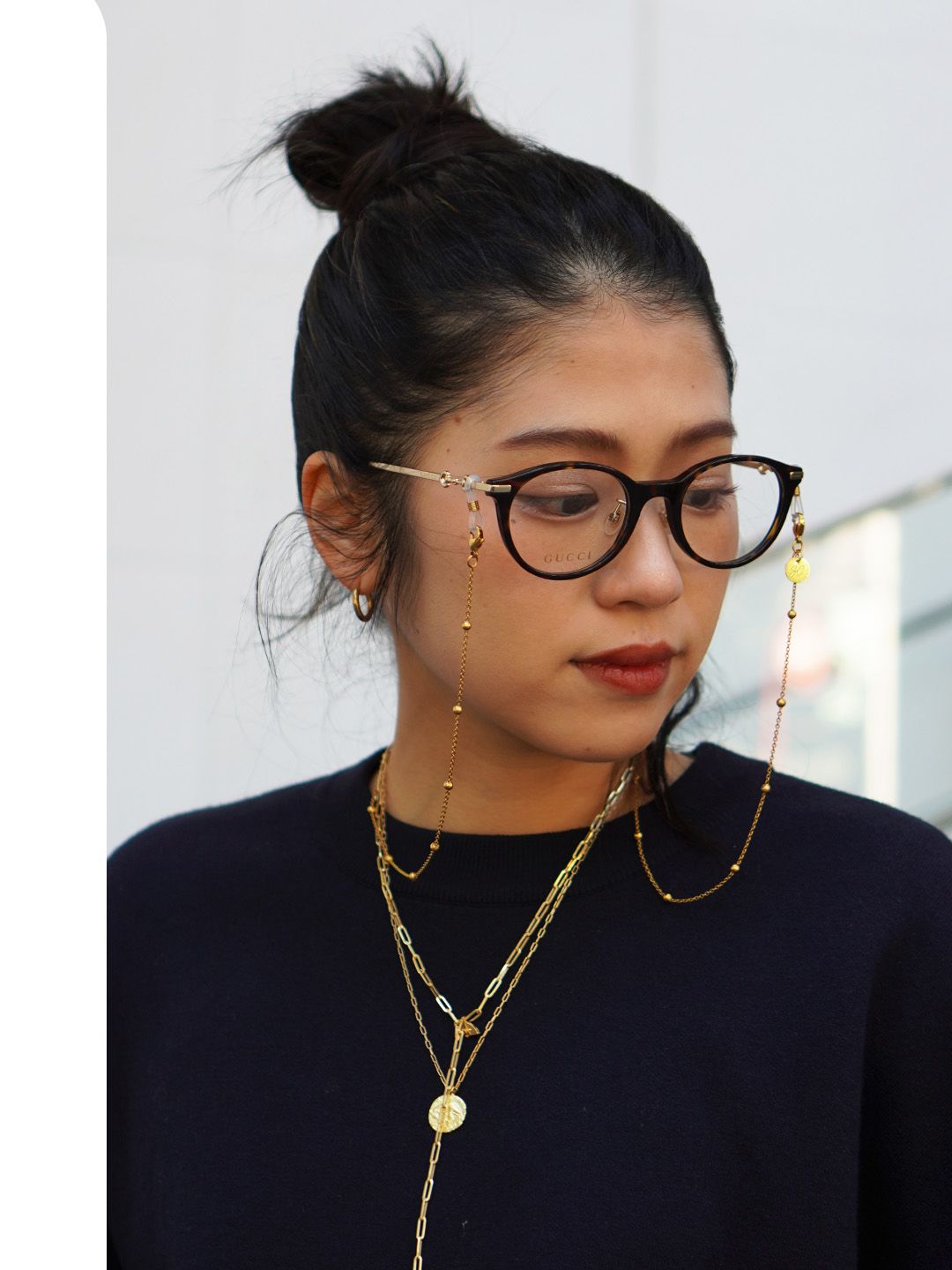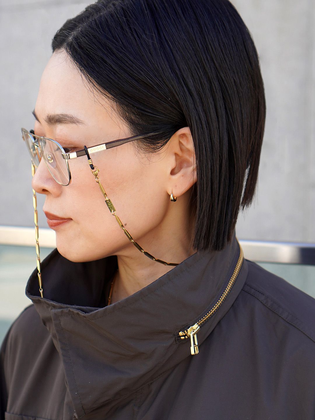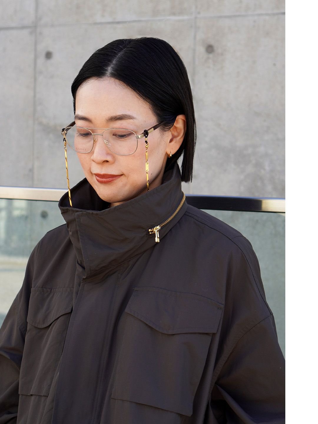 丸型の華奢なフレームはどんな着こなしにも馴染みやすく、手軽にニュアンスチェンジしてくれます。