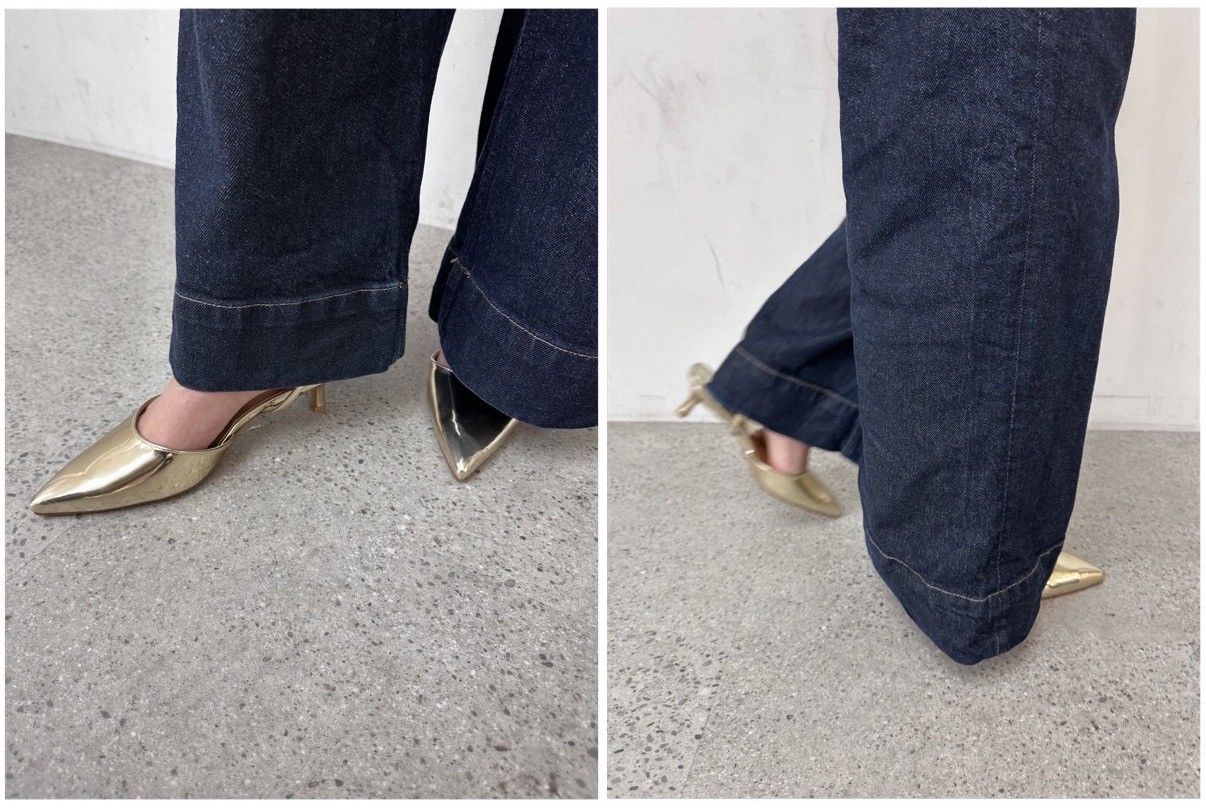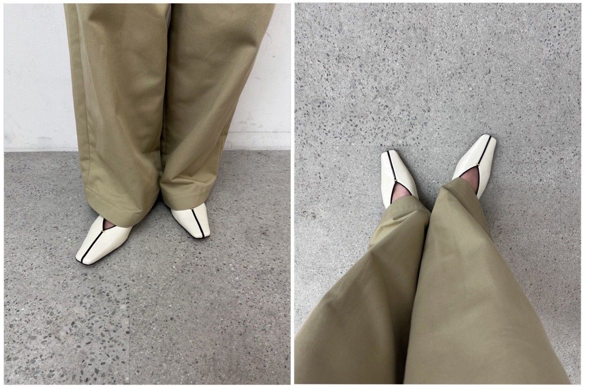 甲が浅めのVカットなので、春に素足履きするとキレイなカットラインで履けるシリーズ。ペタンコすぎないヒールでストレスフリーです。