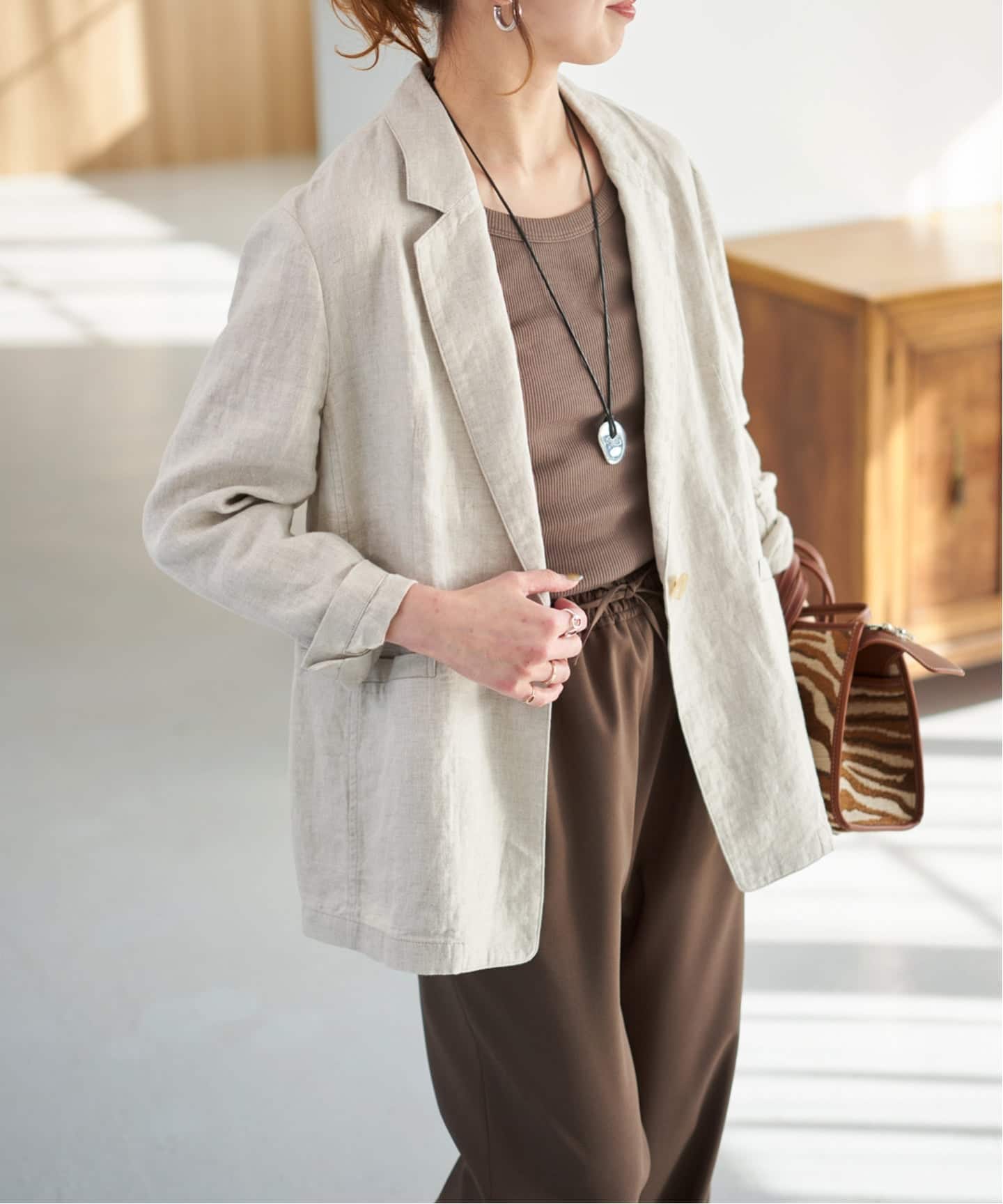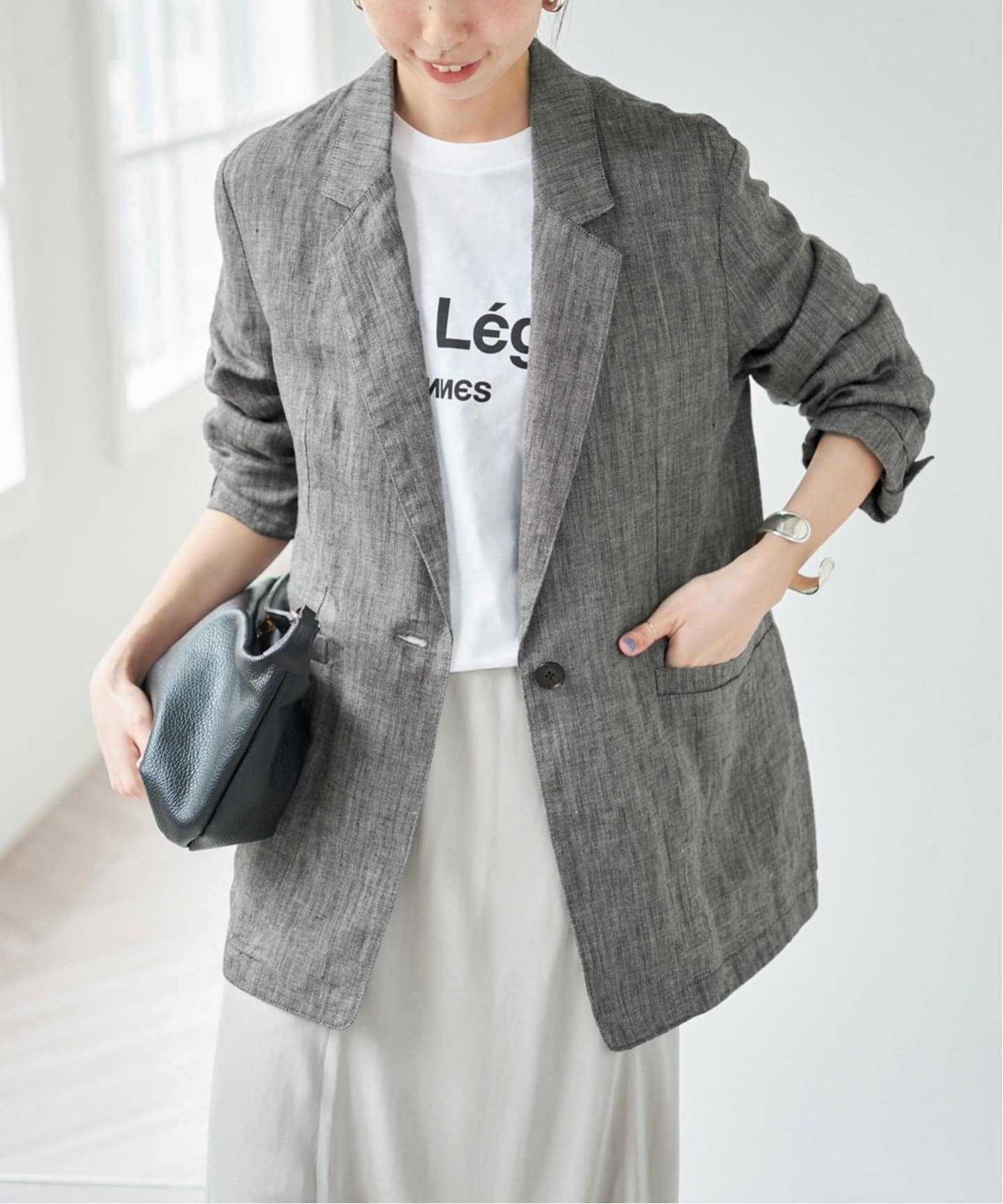 リネンの軽やかな素材感はそのままに、体型やスタイルに合わせて選べるのも嬉しいポイント。