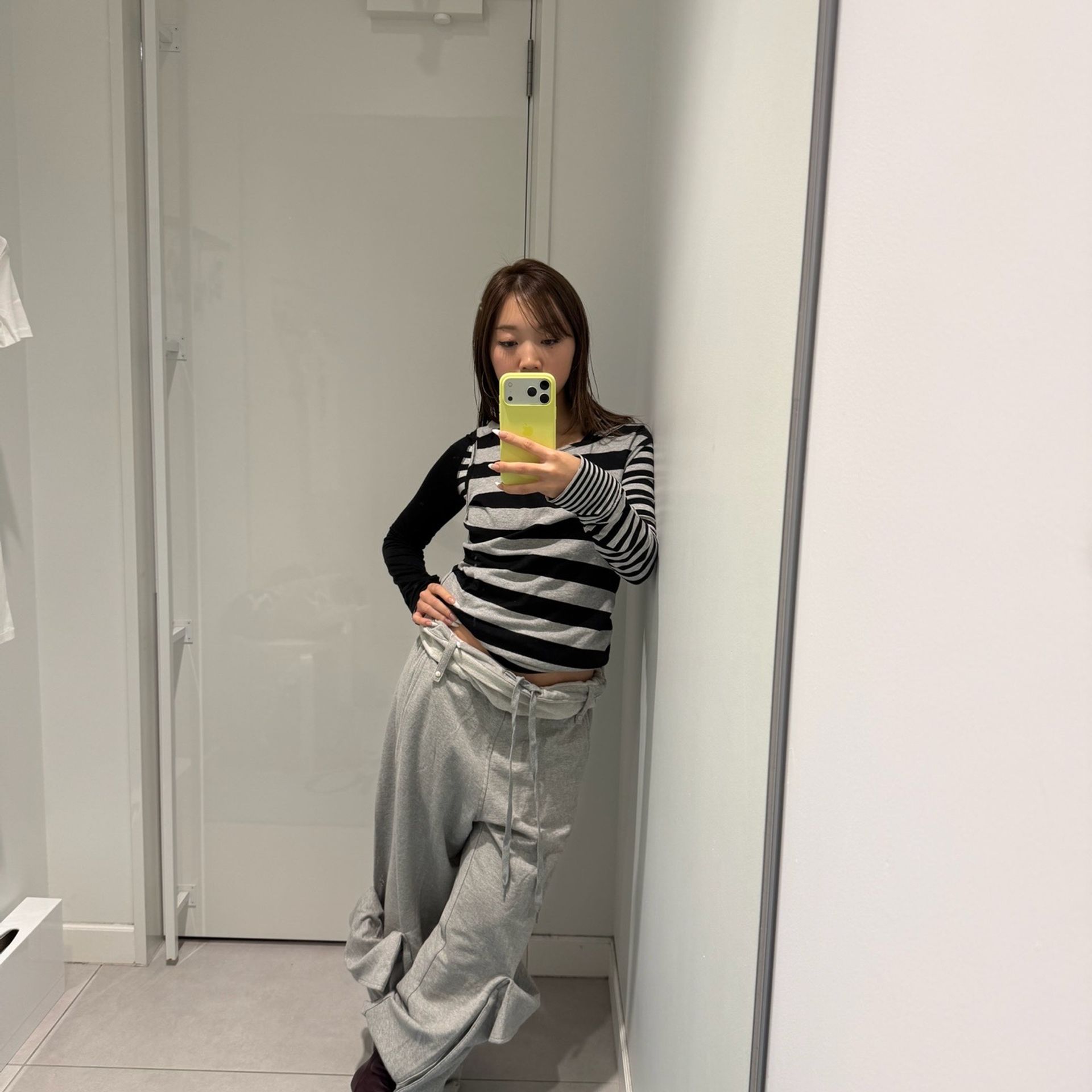 ボーダーのトップスは、レイヤード風になっており、一枚でサクッとオシャレが出来てしまいます!