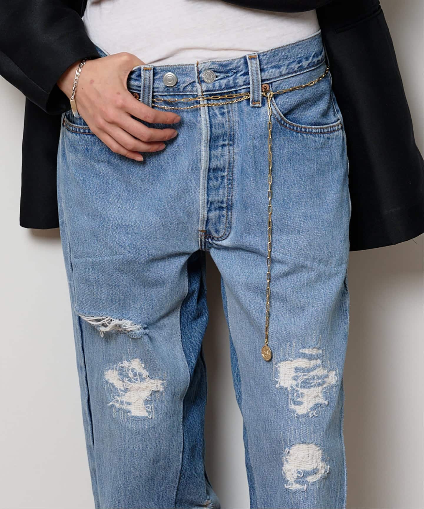 ハードリメイクでヴィンテージ感たっぷりのデザインデニムパンツ