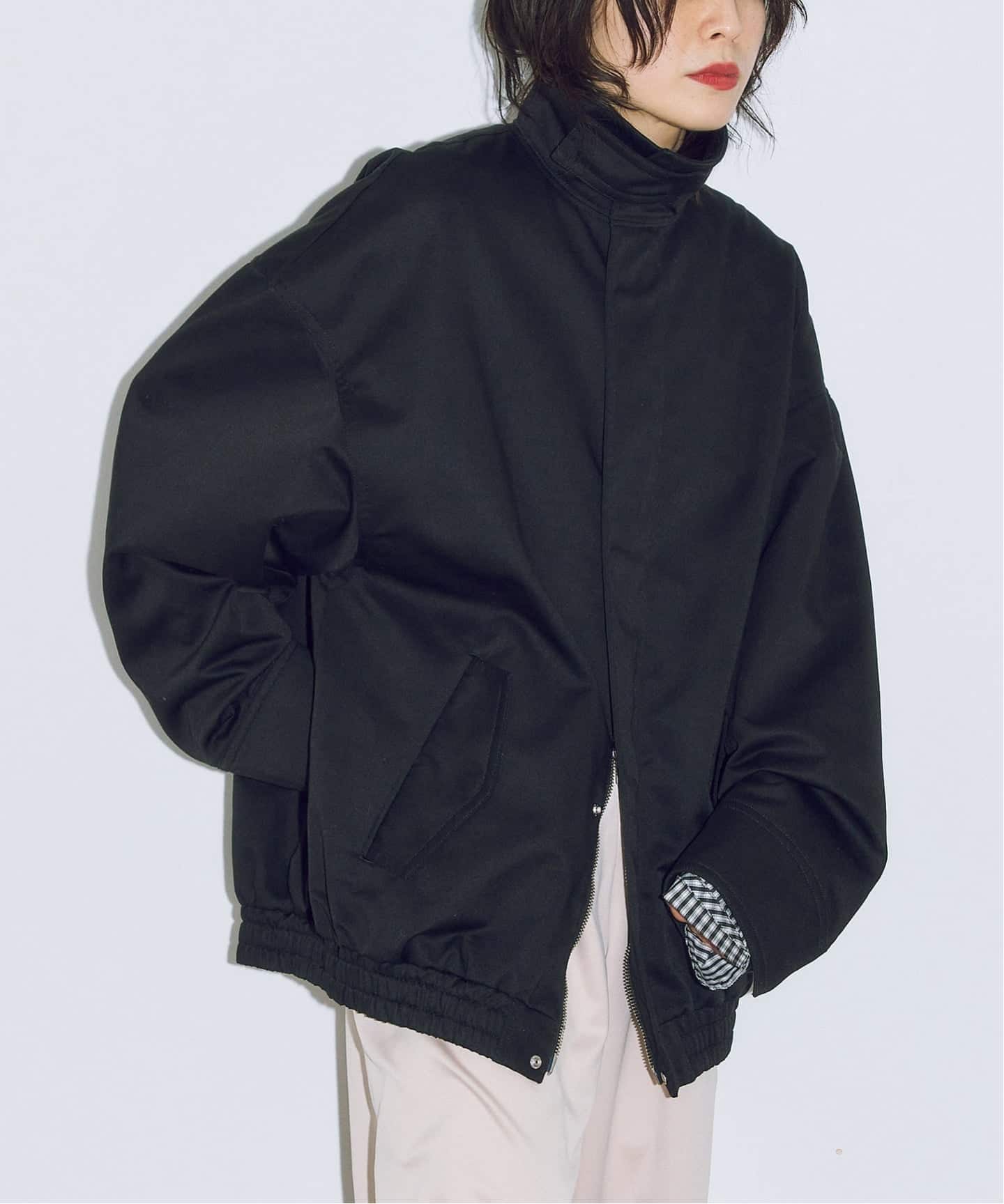 ブルゾンの生地は、綿ツイルのフラットな素材を使用し、ワーク感が強く出すぎないバランス。