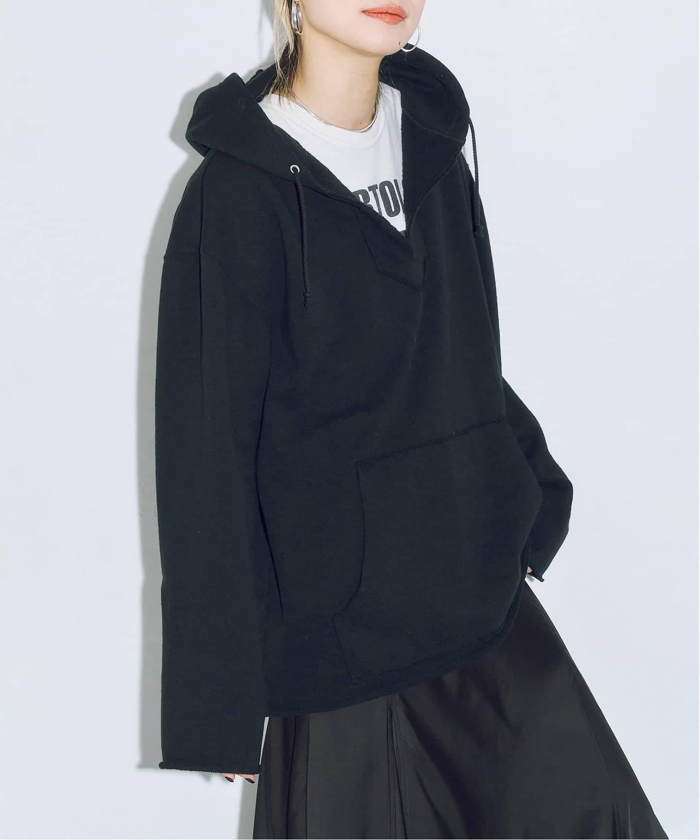 フーディは、広めの身幅&深めのフロントと大き目なフーディが抜け感を出し、こなれた印象。