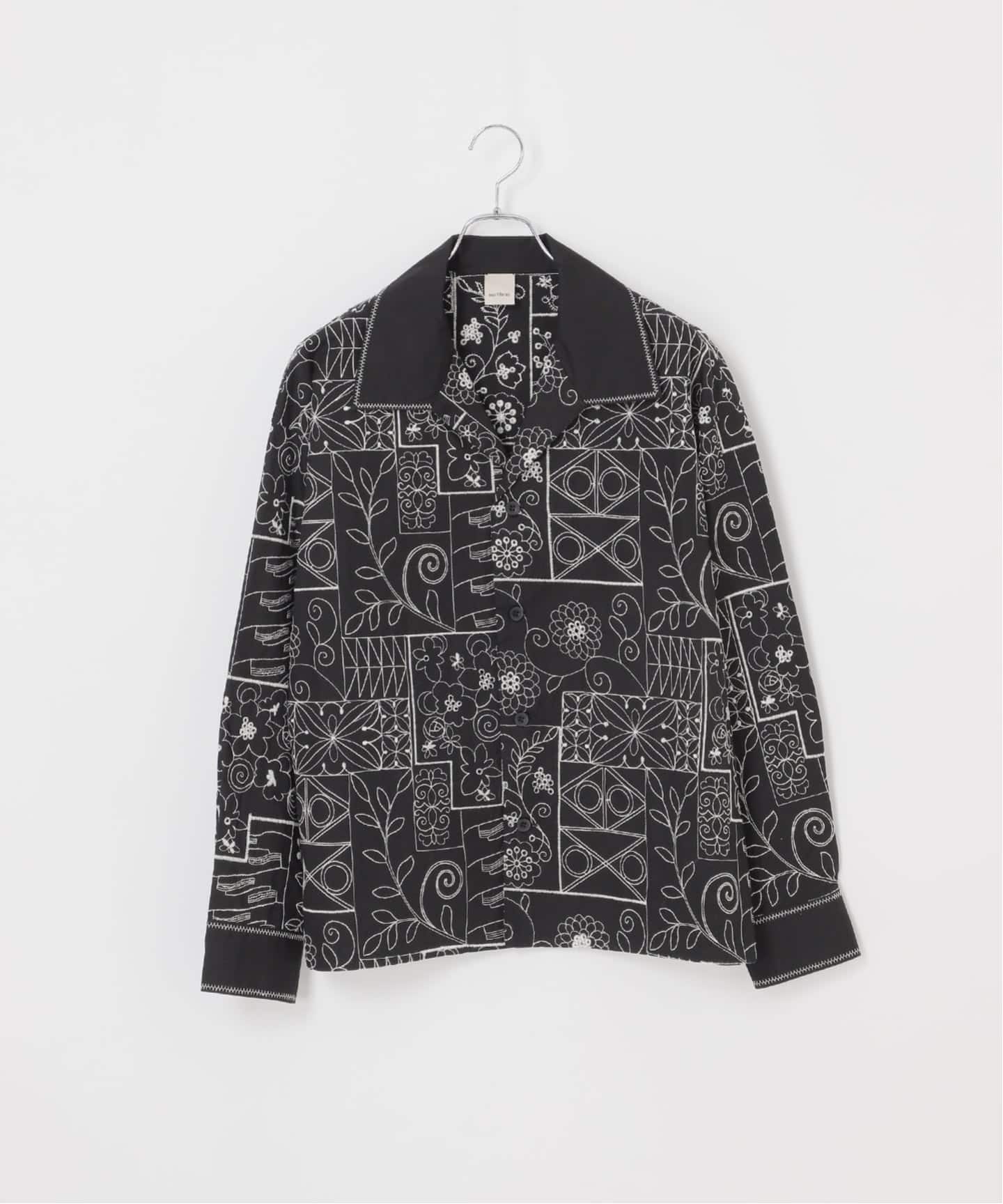 【Deux Allures/ドゥ アリュール】エンブロイダリー オープンカラーシャツ