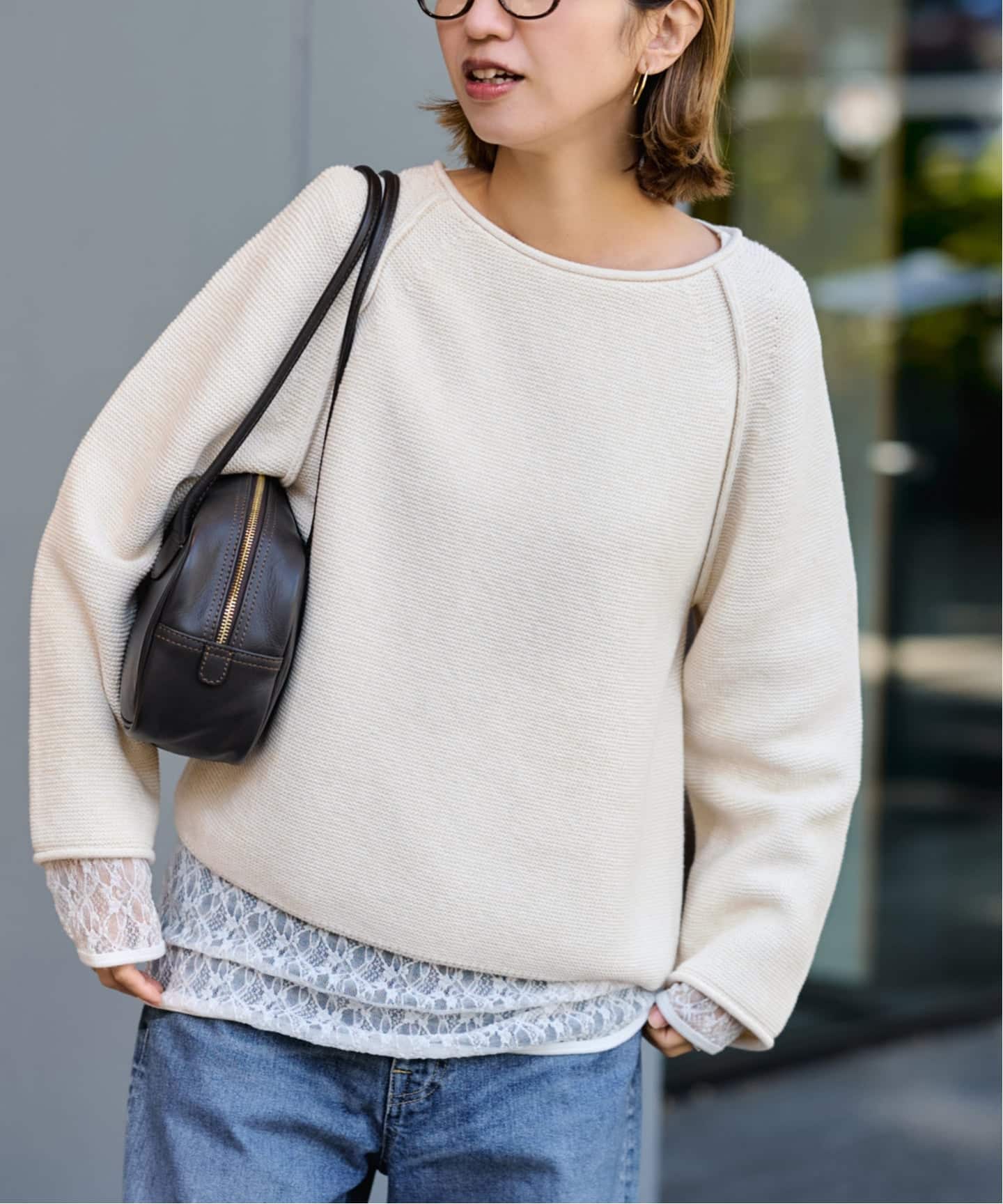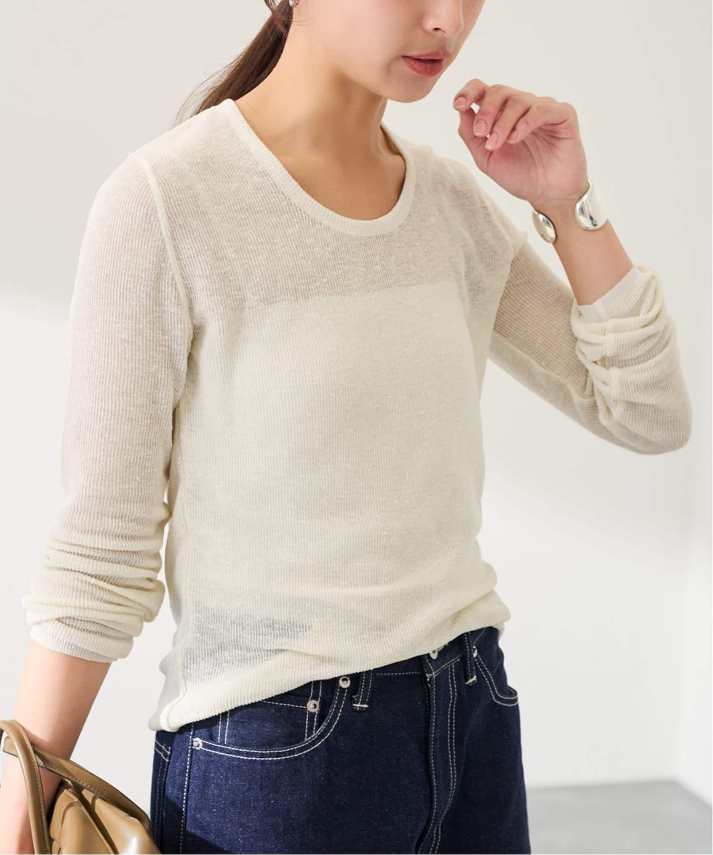 透け感が少なく、寒い季節でも着ぶくれしにくい素材感が魅力です。