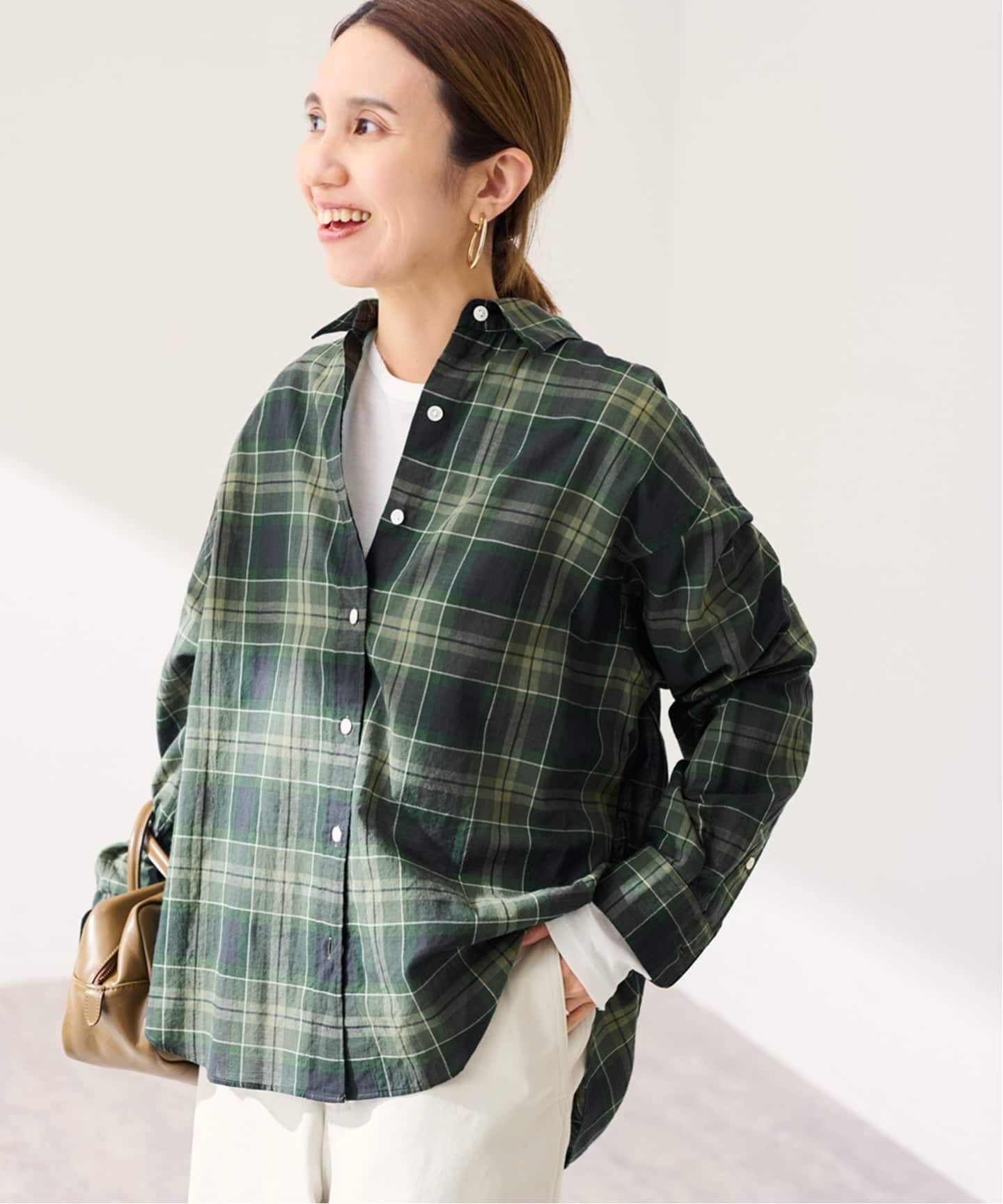 程よいシアー感で、抜け感も演出してくれるチェックシャツ。