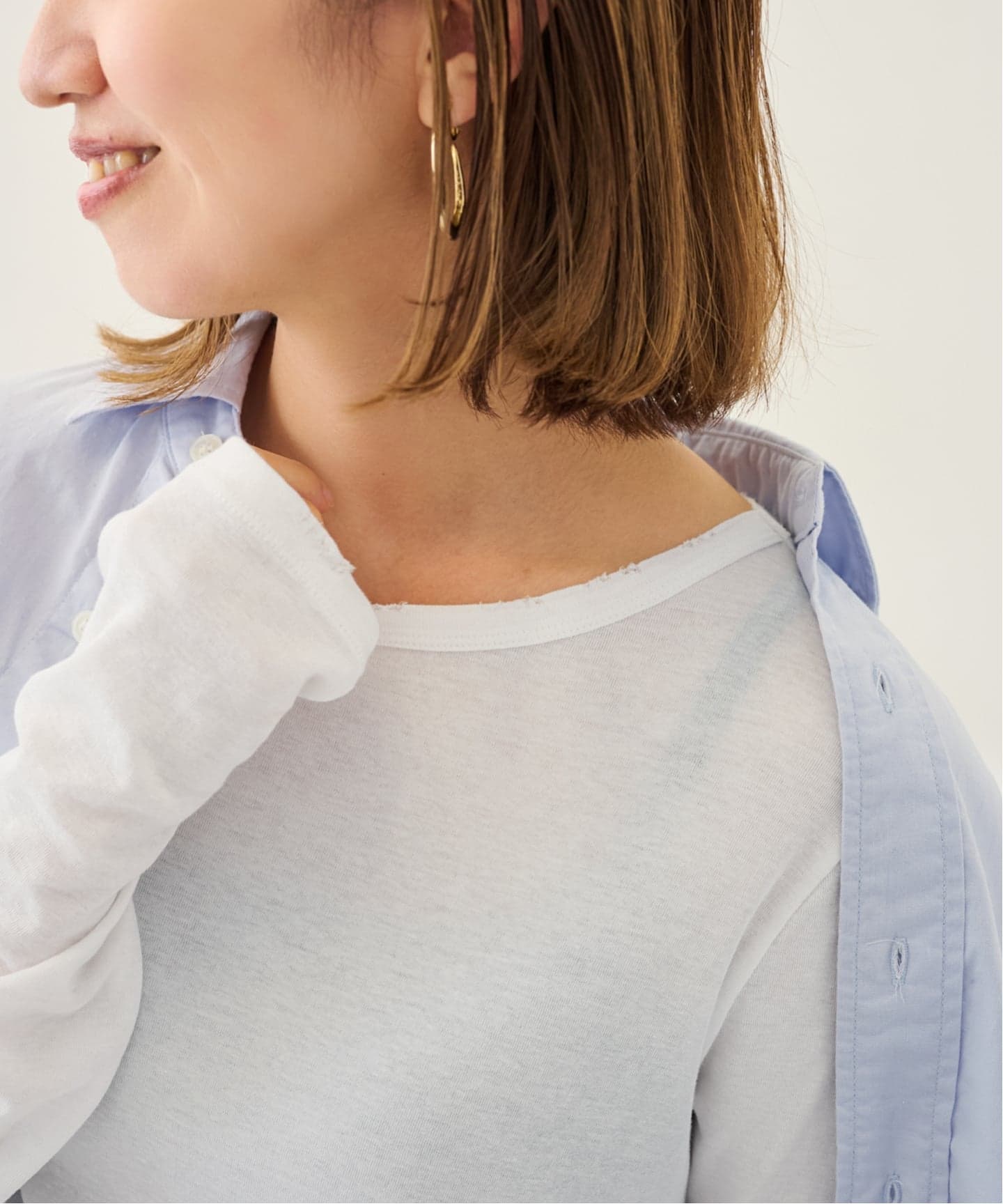 柔らかな着心地で一枚着としてはもちろん、ニットやスウェットなどのインナーや羽織としても使いやすいシンプルなデザインはロングシーズン活躍してくれる必須アイテム!