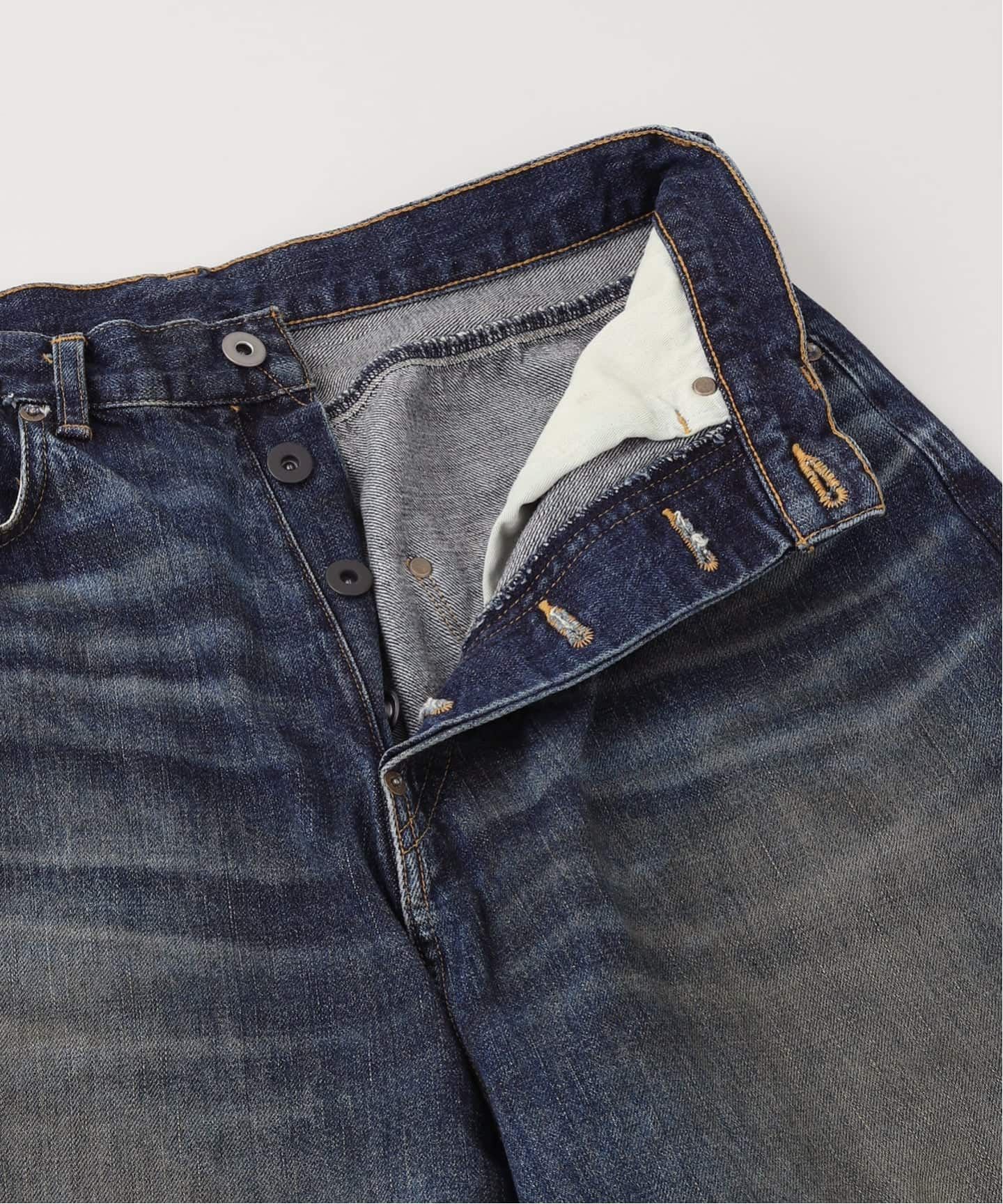 ヴィンテージデニム由来のディテールを随所に取り入れ、無骨さと静かな存在感を併せ持つ一本に仕上げられています。