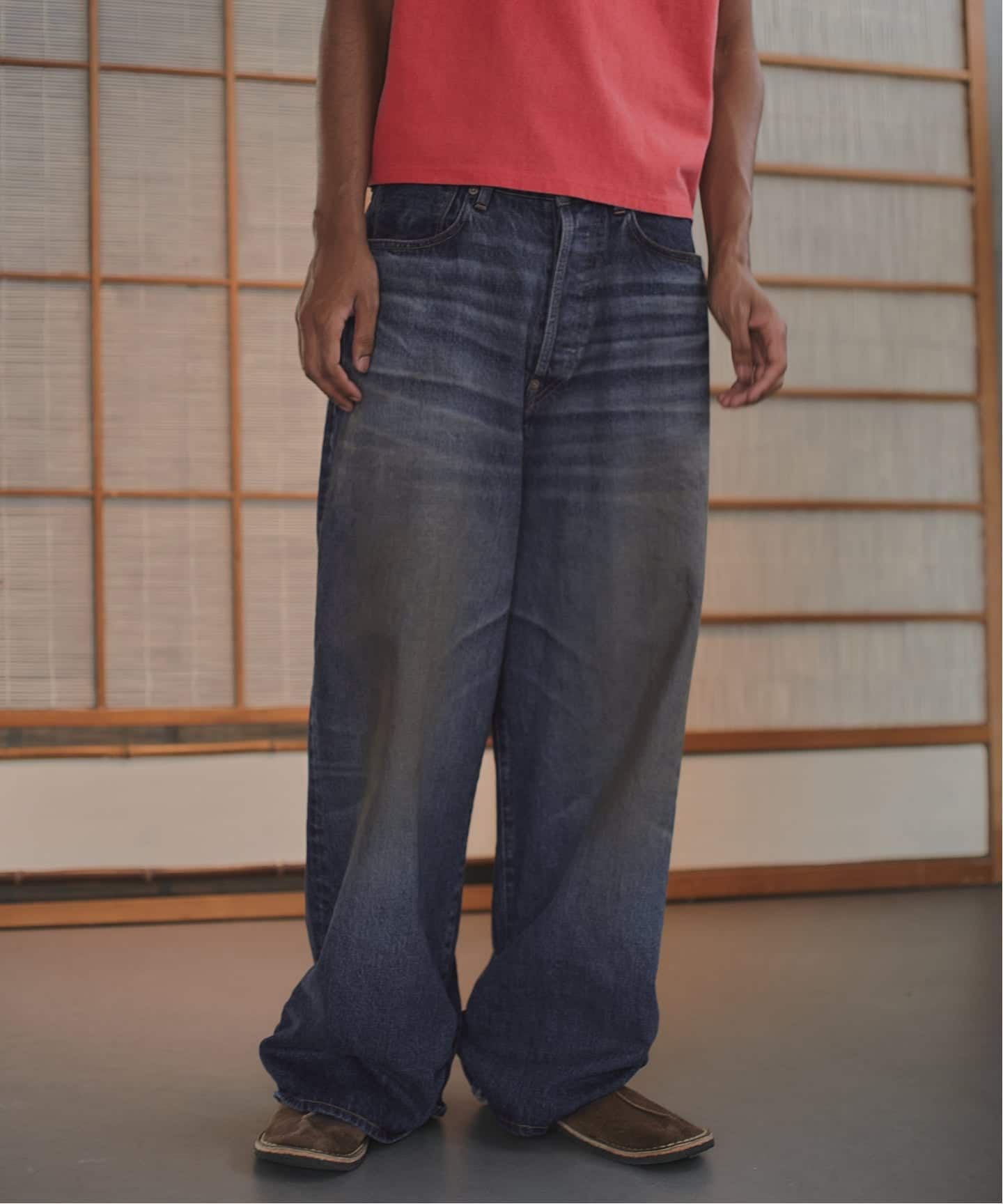 超超ワイドや「5超」といった、パンツの太さでキャラクター性を表現してきた職人たちの文化に着想を得て、シルエットバランスを再構築したデニムパンツ。