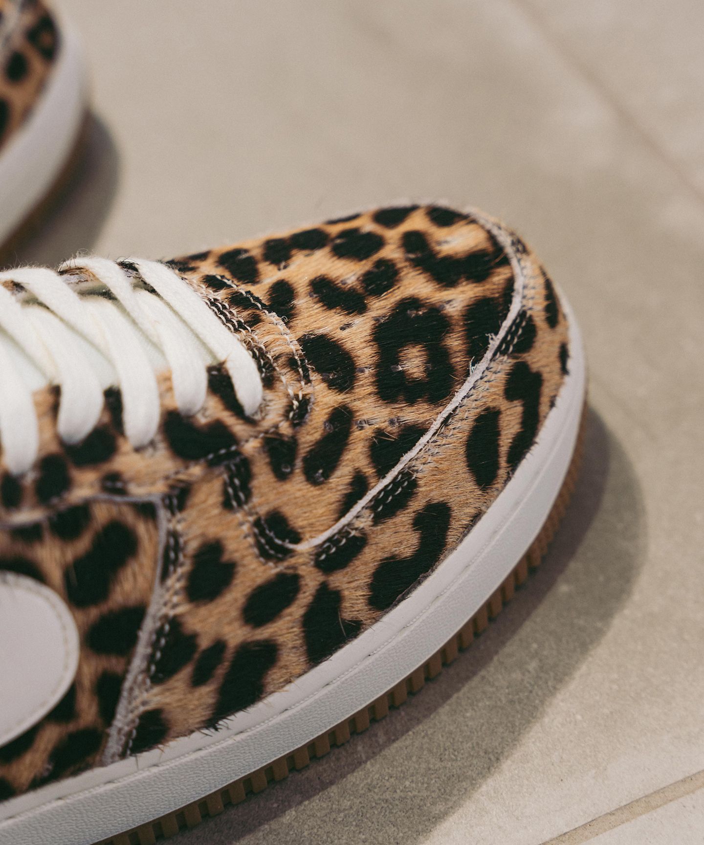 毛足感のあるファブリック素材にレオパード柄がインパクト大の一足。