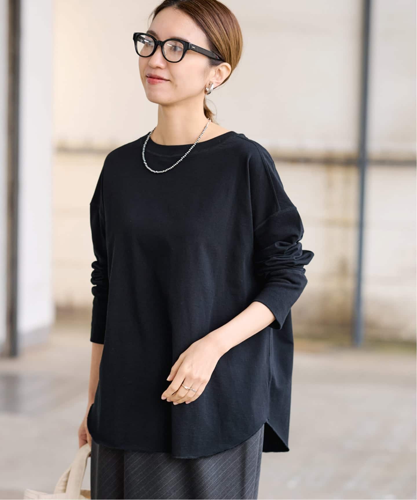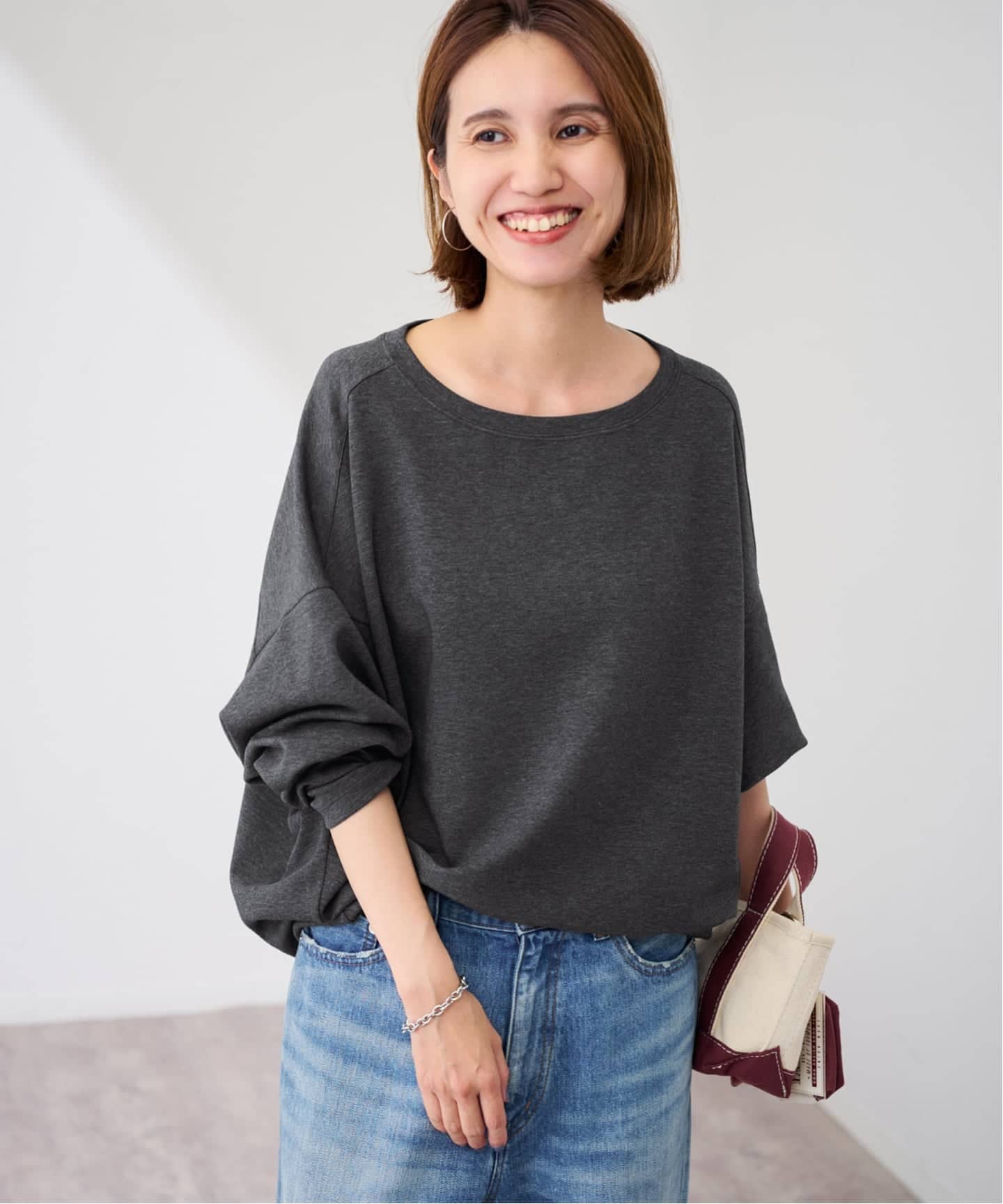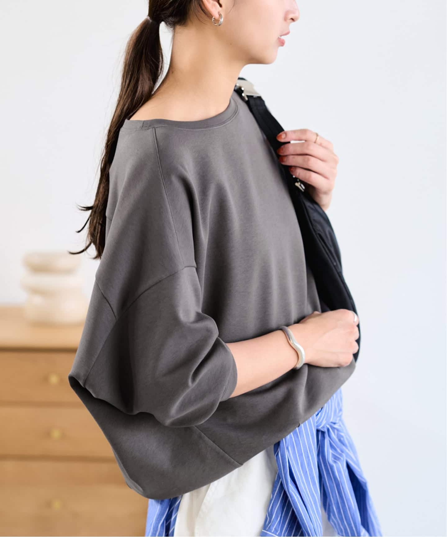 オーバーサイズのシルエットに袖は程よくボリュームがあり、こなれた雰囲気を演出。