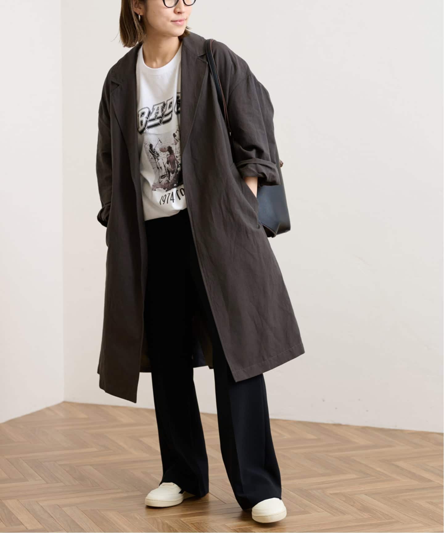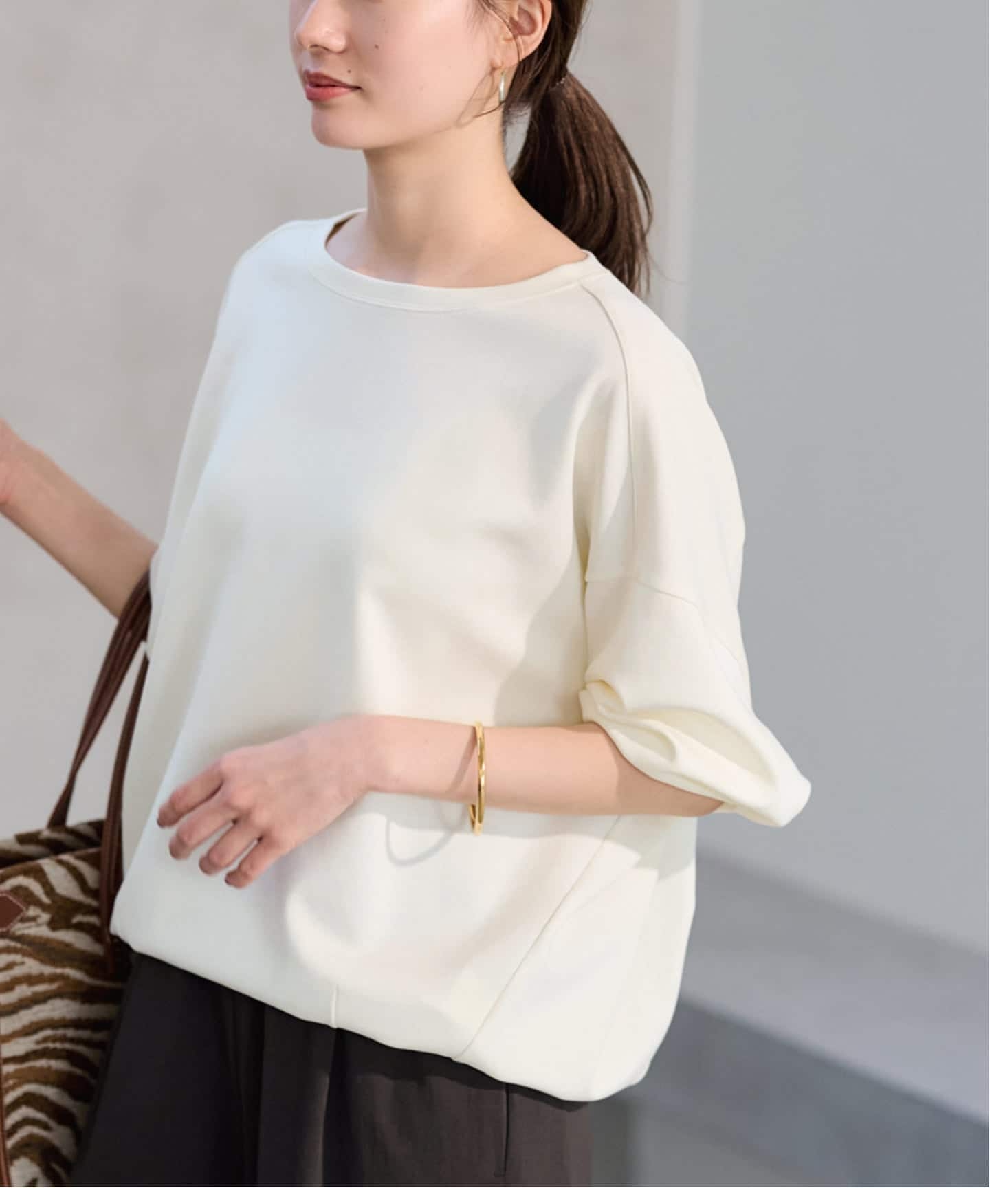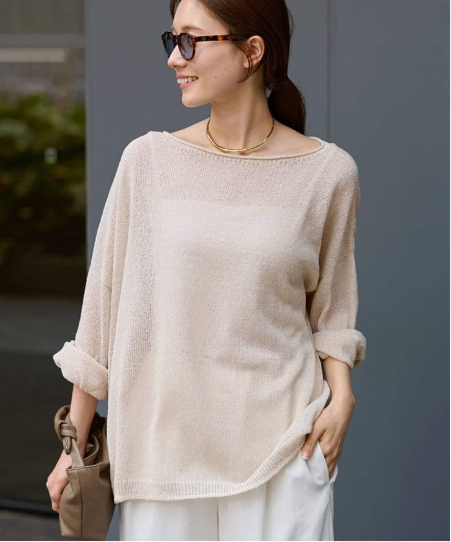 オーバーサイズのシルエットに袖は程よくボリュームがあり、こなれた雰囲気を演出。