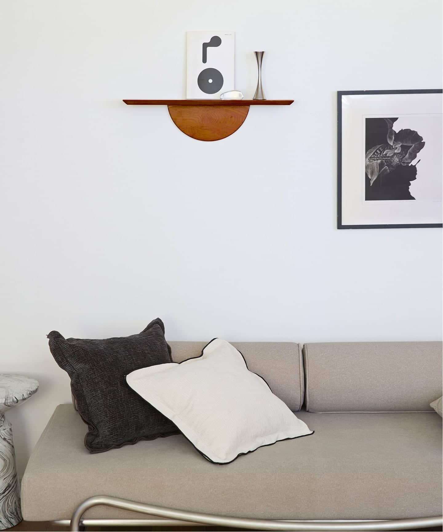半円型のフォルムが印象的な、デザイン性の高いウォールシェルフ。