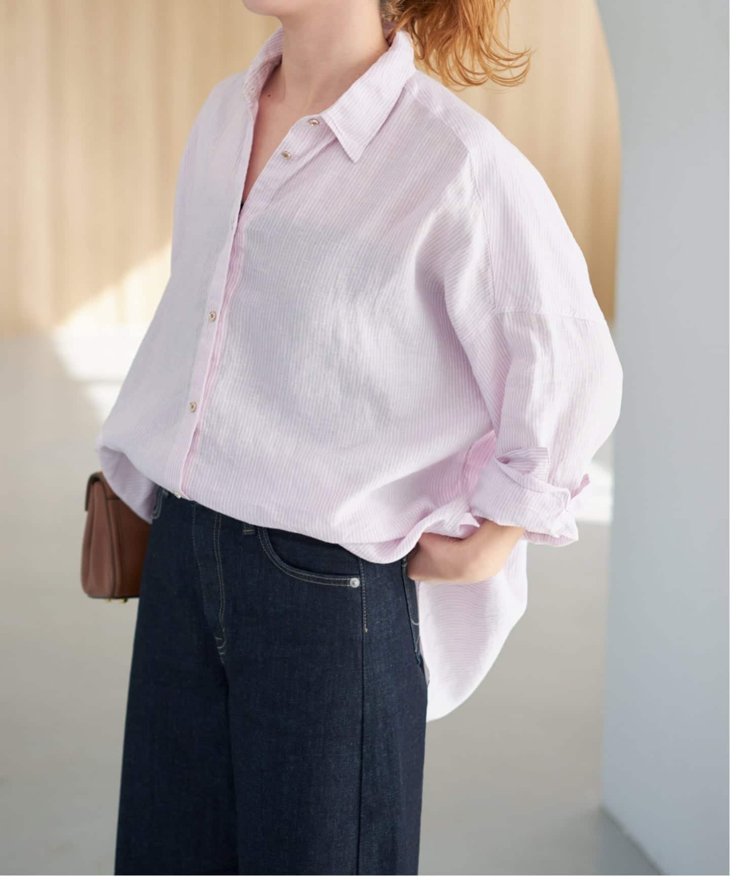 《ゆったりサイズ》追加予約 80リネンカシュクール ビッグシャツ