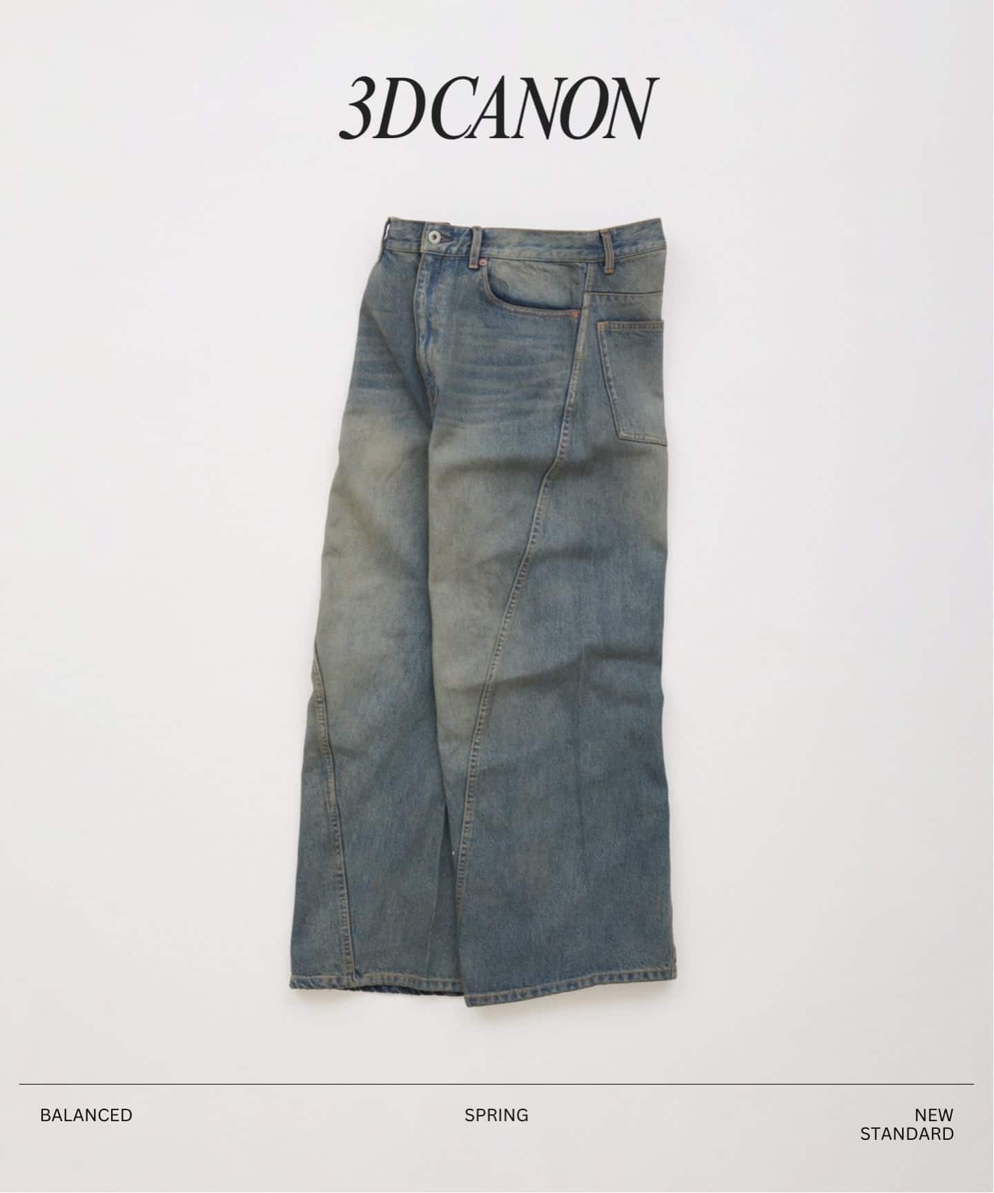 立体裁断デニムの名作をルーツに、ねじれのあるフォルムを今のバランスで再構築した3Dデニム。