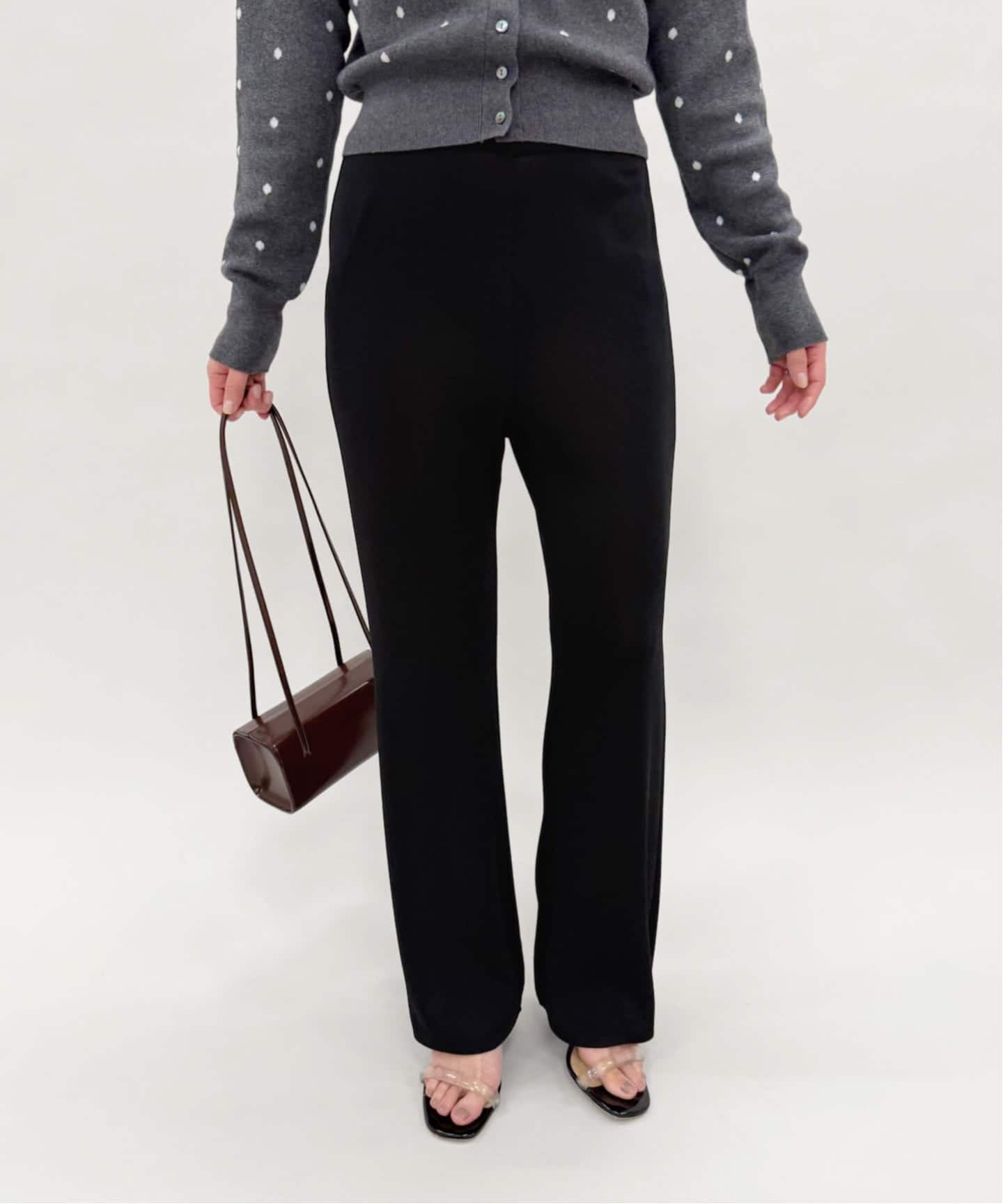 レギンスとパンツの中間のような感覚で着用いただけるすっきりとしたシルエットのニットパンツ。