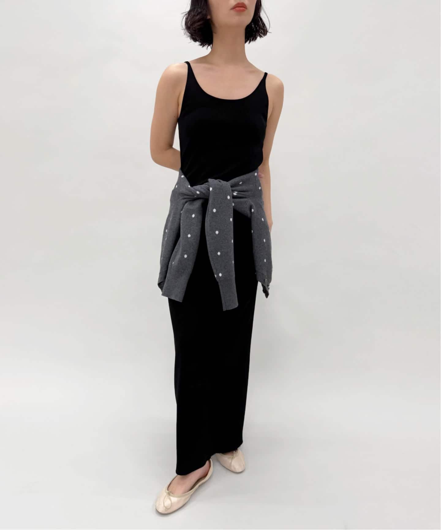 緩やかなフレア感×ニット生地なので、頑張りすぎてないけどどこか綺麗目で、かつラフ過ぎないのがポイント。