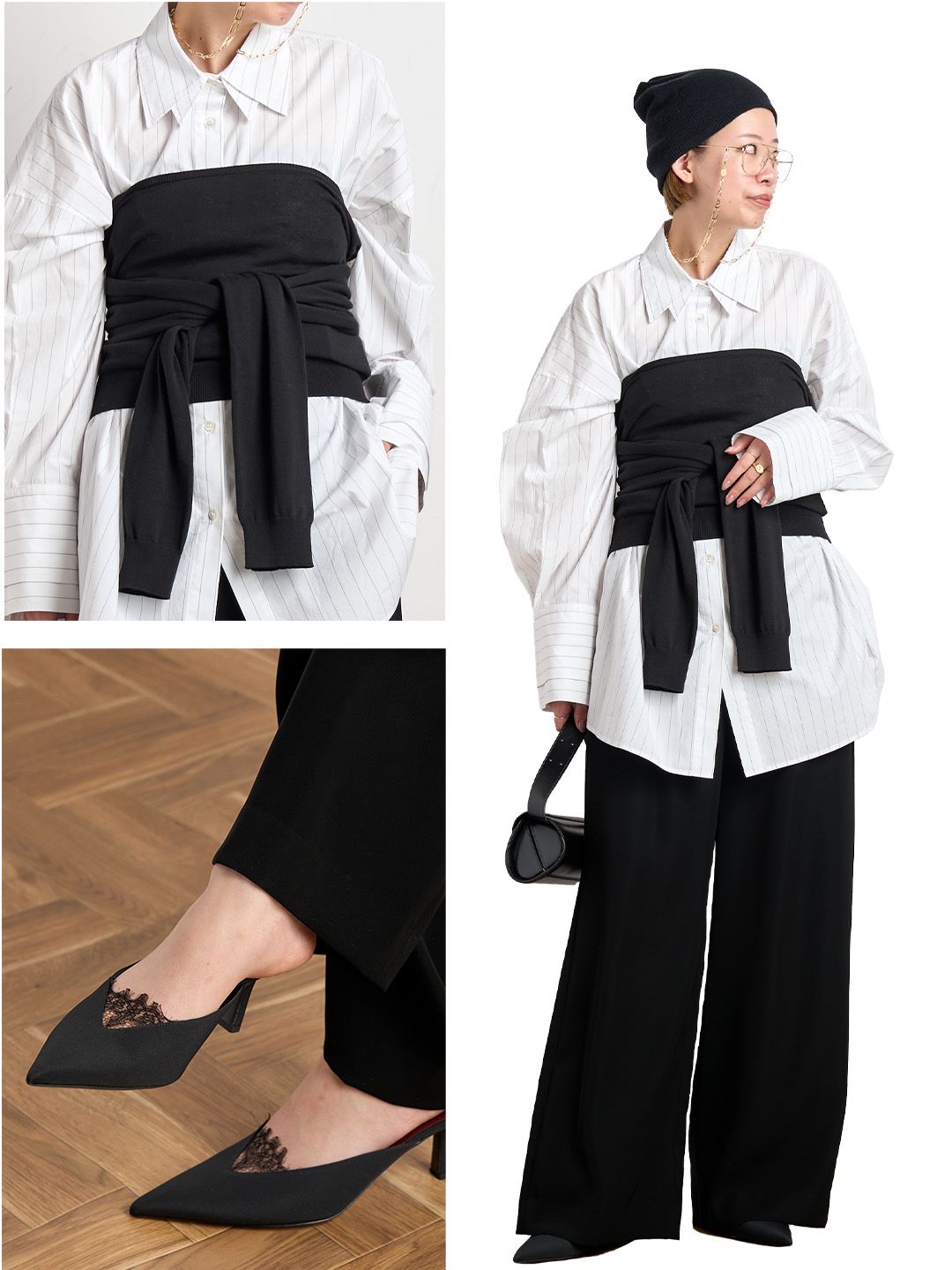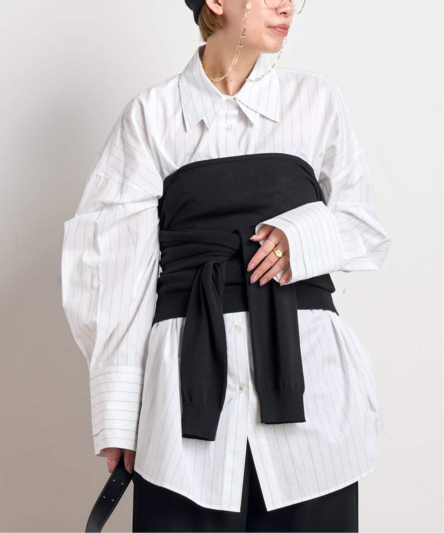 ウエストに巻いたニットは、ビスチェ風にも着られる2wayタイプのプルオーバー。