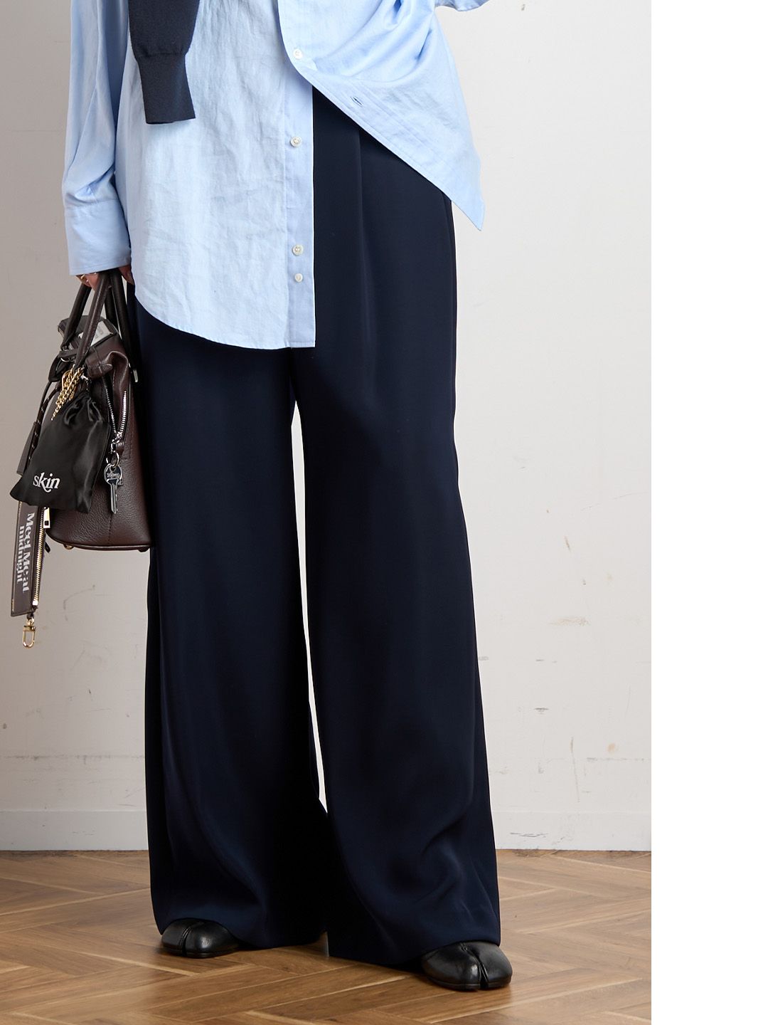 ほんのり艶のある生地は落ち感があり、ワイドシルエットもスッキリと品の良い印象。