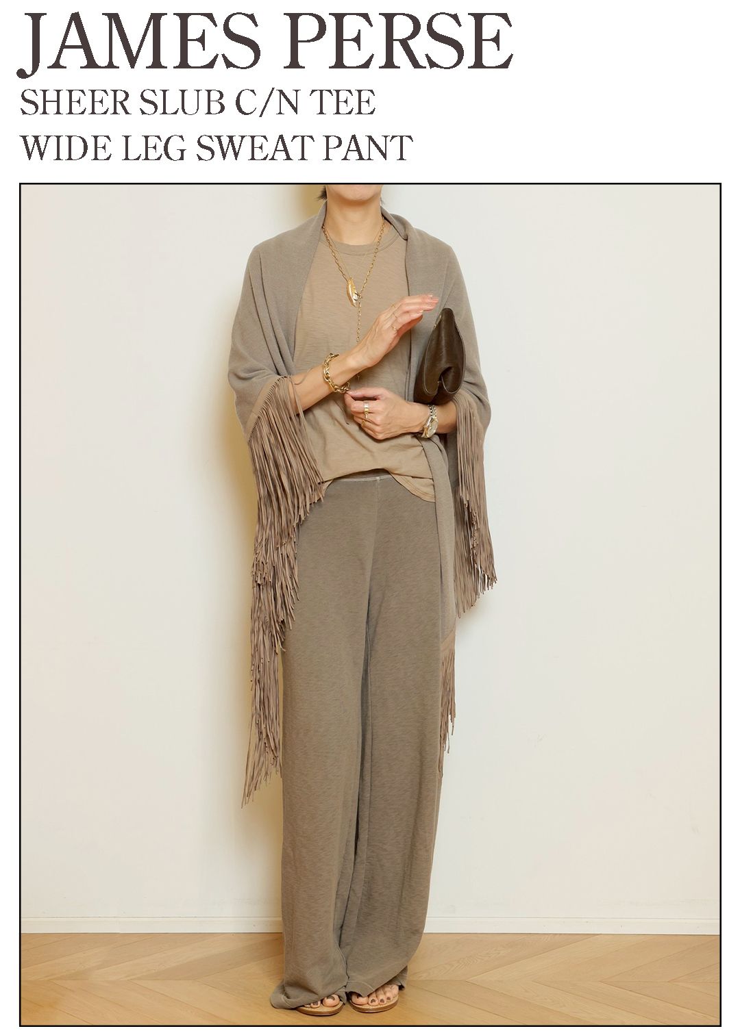 一足先に春のムードを感じさせる、表情のある風合いと色目。JAMES PERSEらしい、リラックス感のある佇まい。