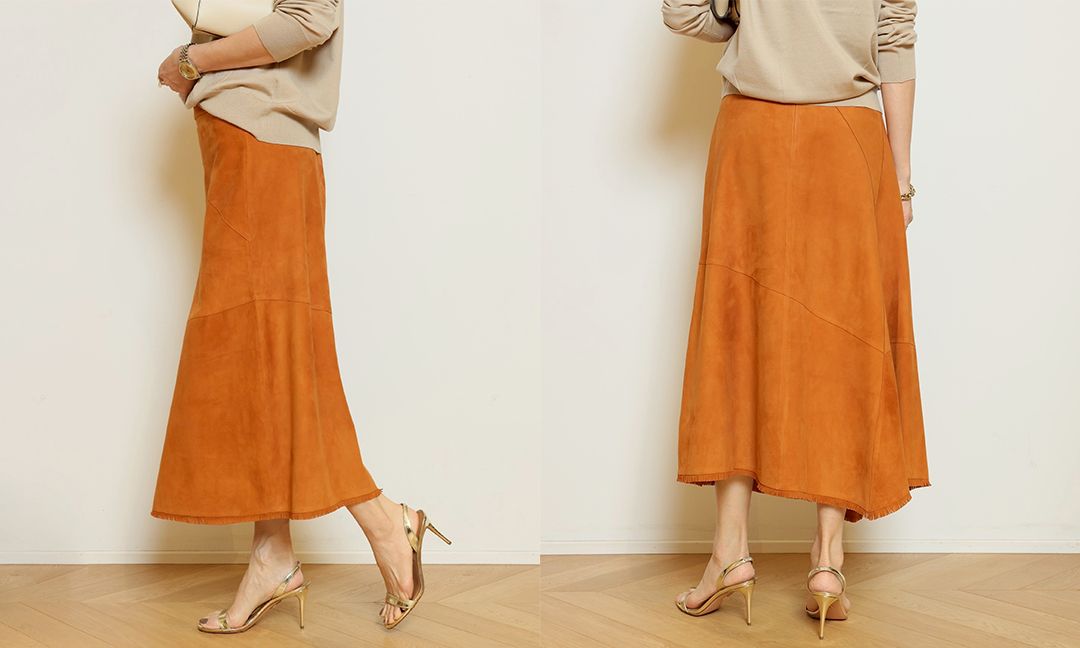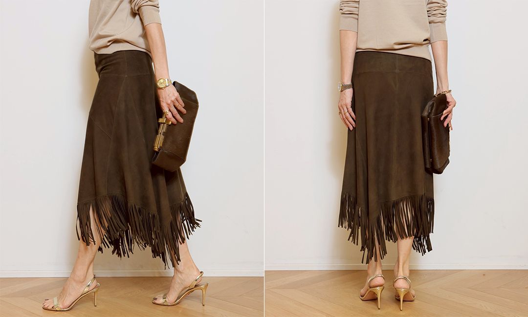 大胆にあしらわれたフリンジが印象的で、動くたびに揺れ、自然と視線を惹きつけるスカートです。