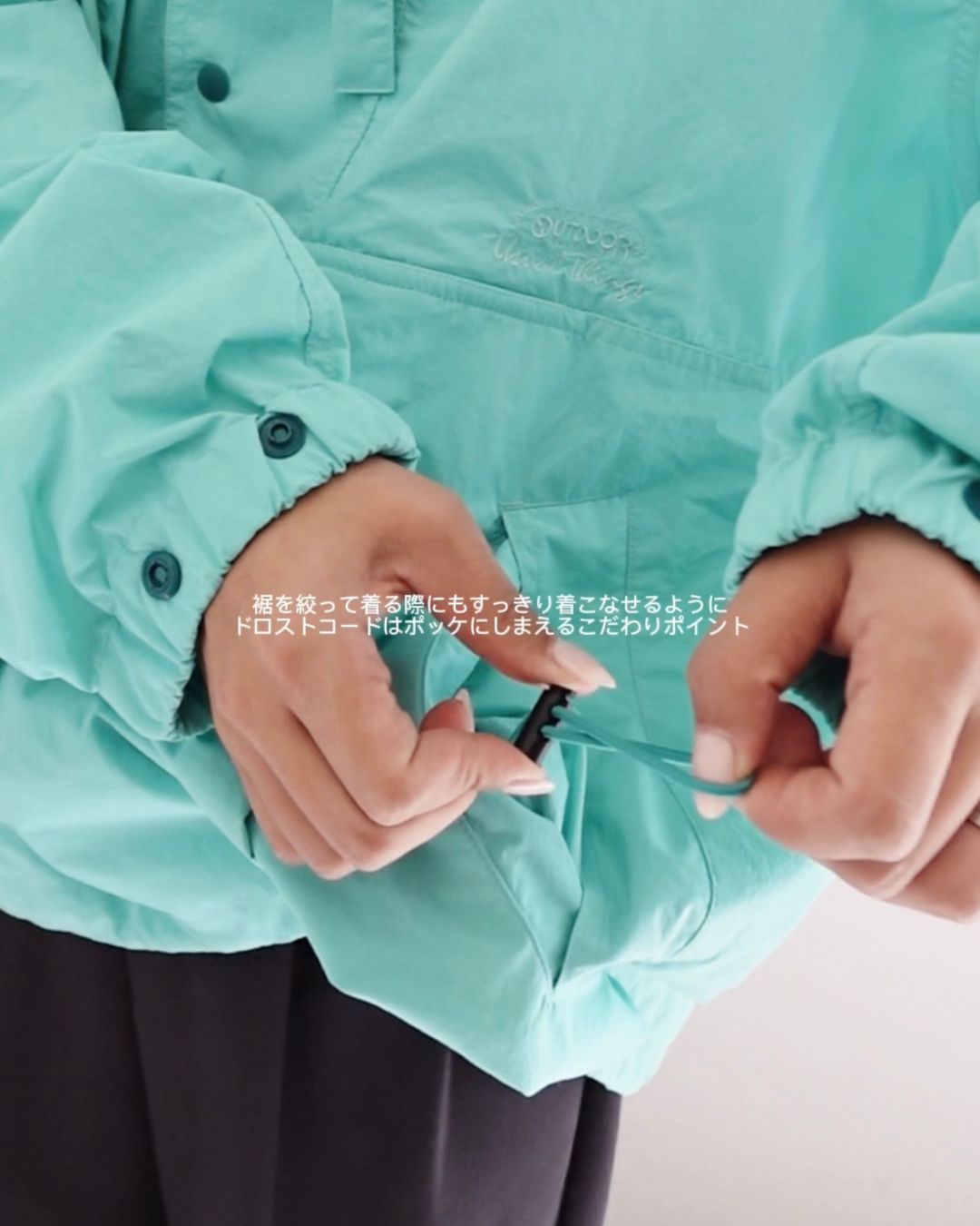 今回は対象アイテムの【撥水パッカブルアノラック】をご紹介いたします。