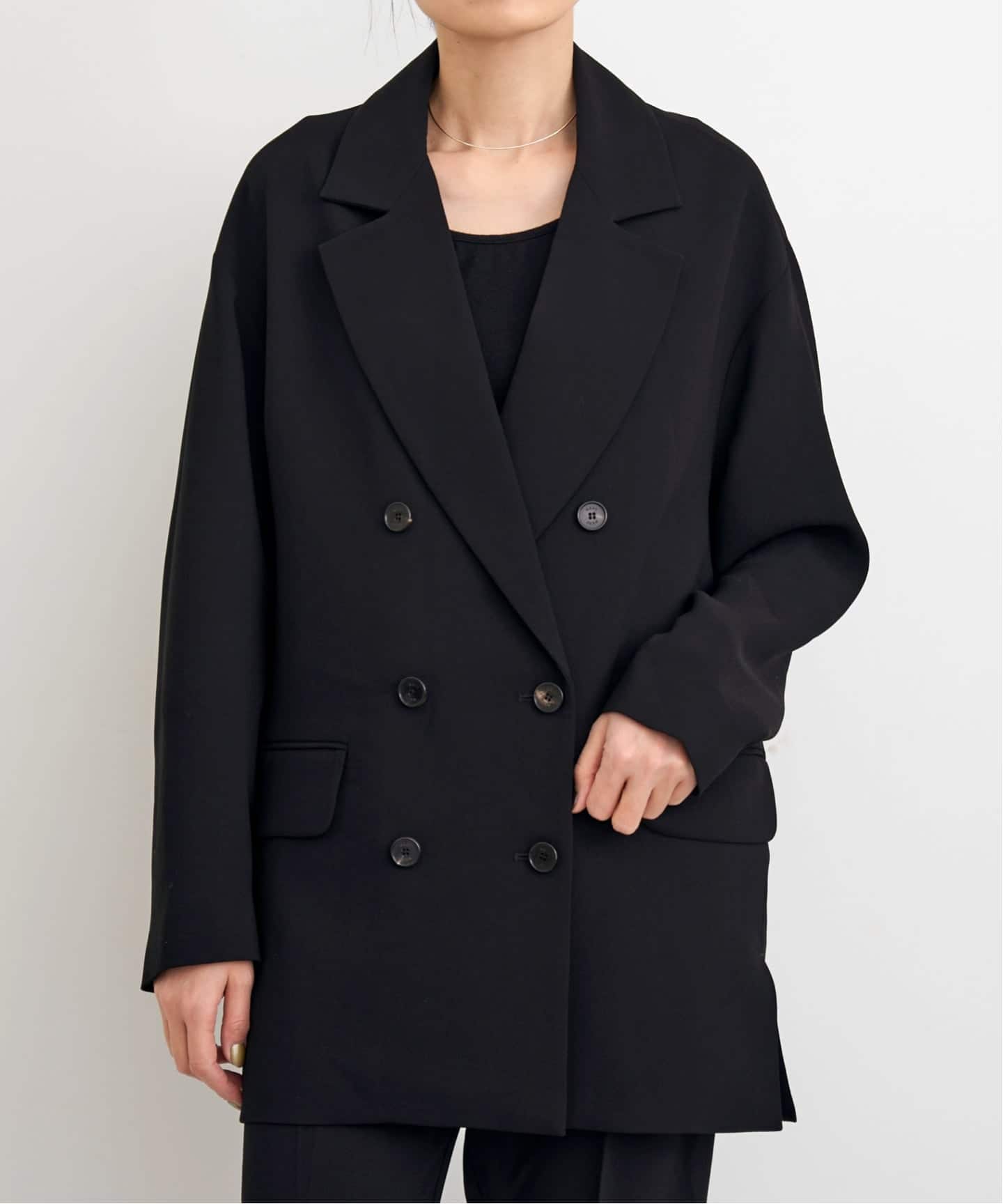滑らかな程よい落ち感のジョーゼット素材のジャケット。きちんと感がありつつもオーバーサイズめなデザインで、カーディガン感覚でラフに羽織れるリラクシーさも魅力です。