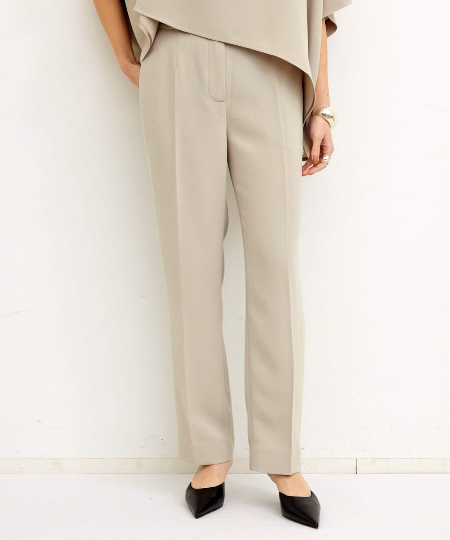 マスキュリンに合わせられるパンツ。すっきりとしたラインやカラーで、どんなトップスとも好相性です。