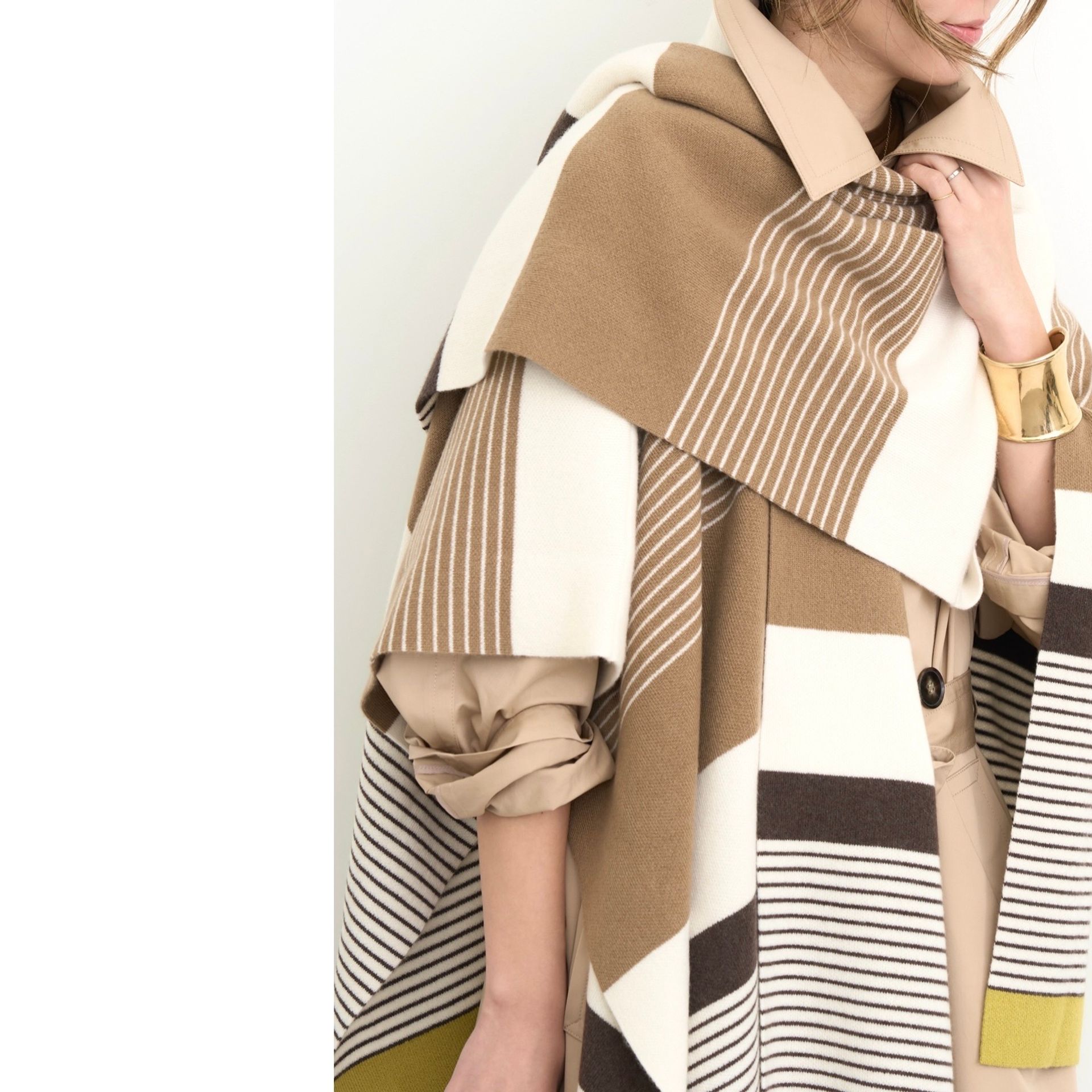 明るいライトベージュの色味や襟周りのデザイン、オーバーサイズでカチッとしすぎない今っぽいシルエットなど細部にまでこだわりました。