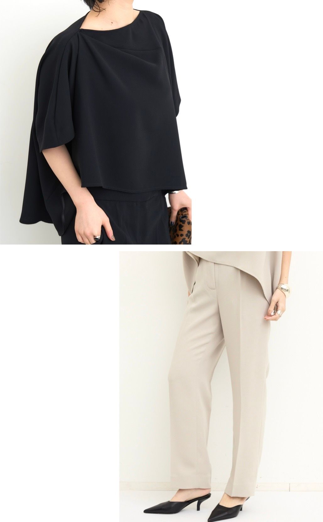 すっきりとしたシルエットのクロップドパンツと合わせればモダンなフォーマルスタイルの完成です。