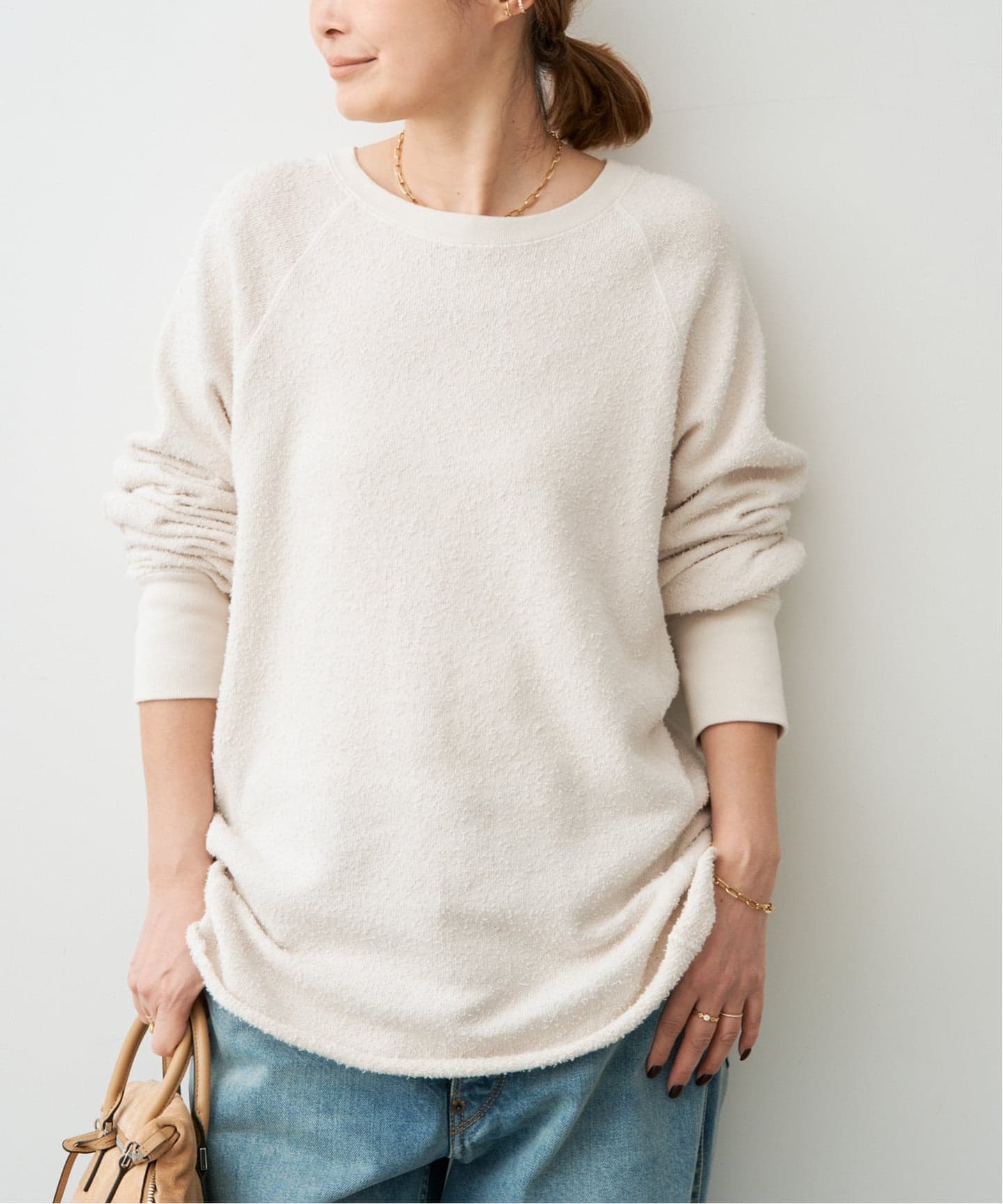クロップドの着丈にルーズな袖のコントラストがかわいい!