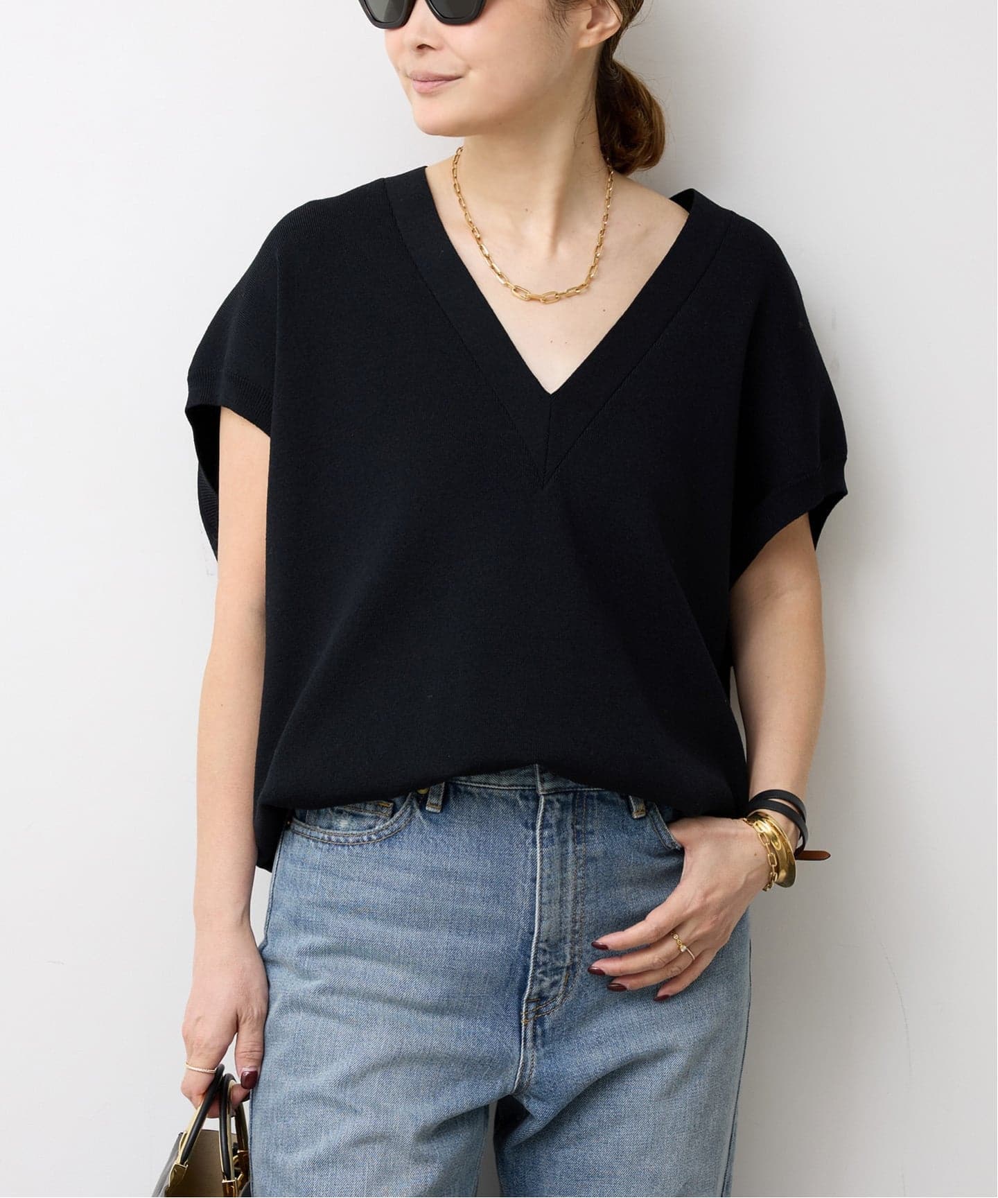 1枚でも適度に華やぐ袖の流れが真面目にならずに雰囲気よく。