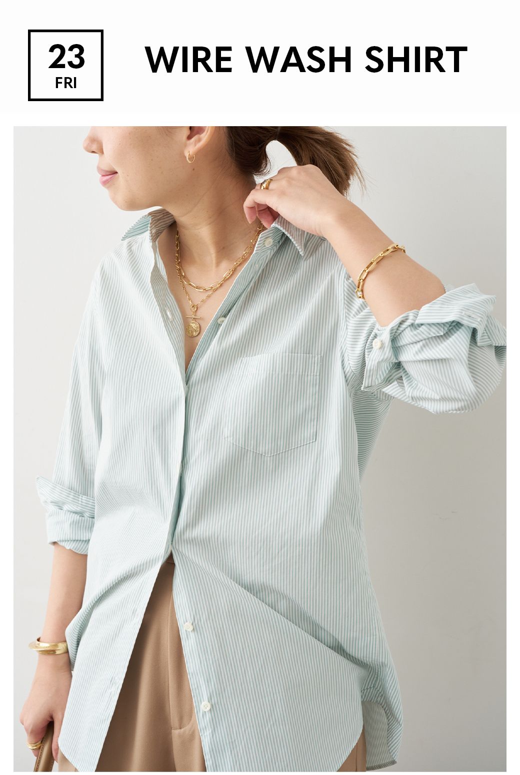 形は定番のワイヤーウォッシュシャツ。愛され続ける定番シャツだからこそいつもと違うカラーにも安心して挑戦できる。