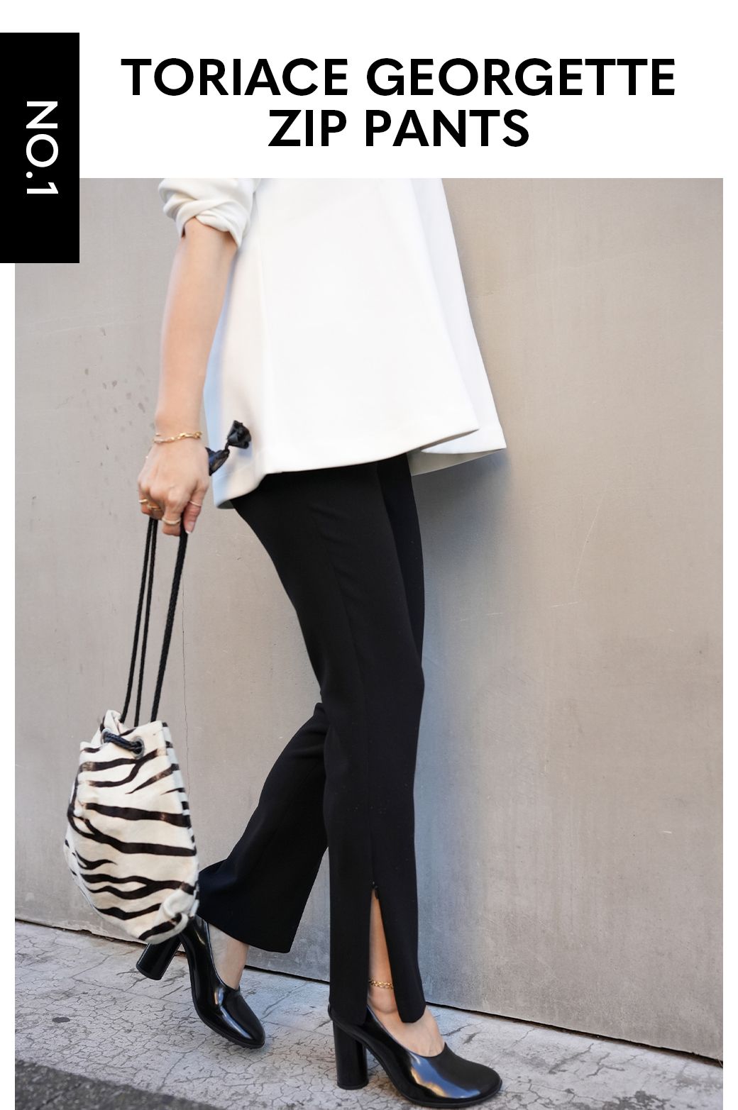 ベーシックに見えながらも高めのウエストに箔の付くセンタープレス、美しく決まるラインの良さ。