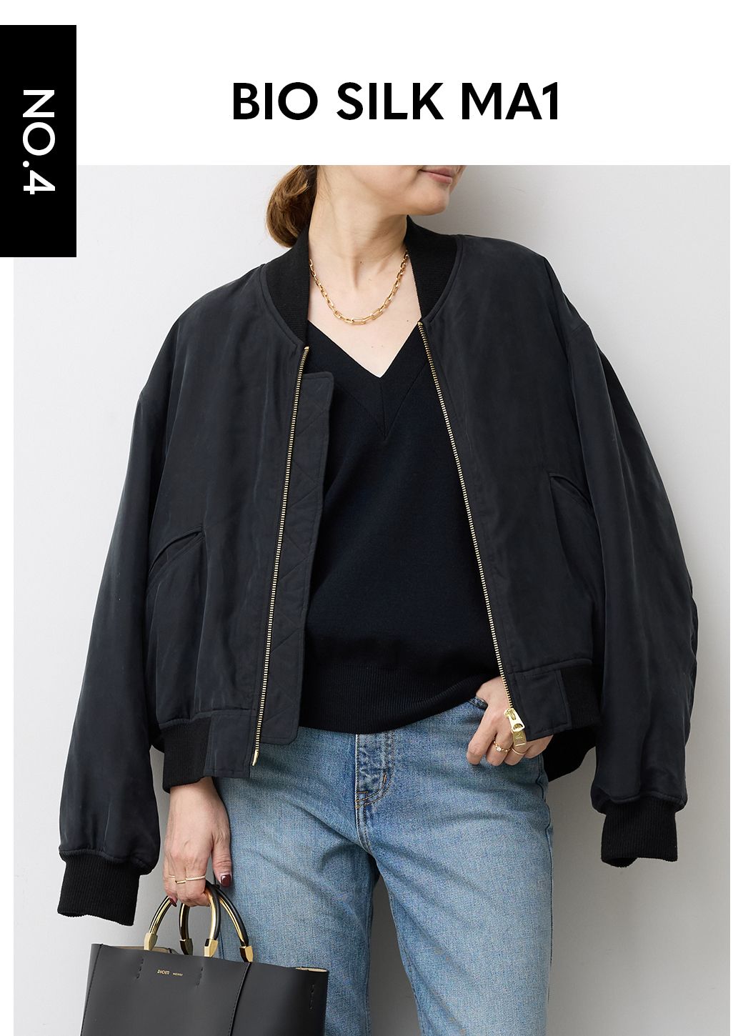 タフになりがちなMA1を女性らしい洗練されたアイテムに。