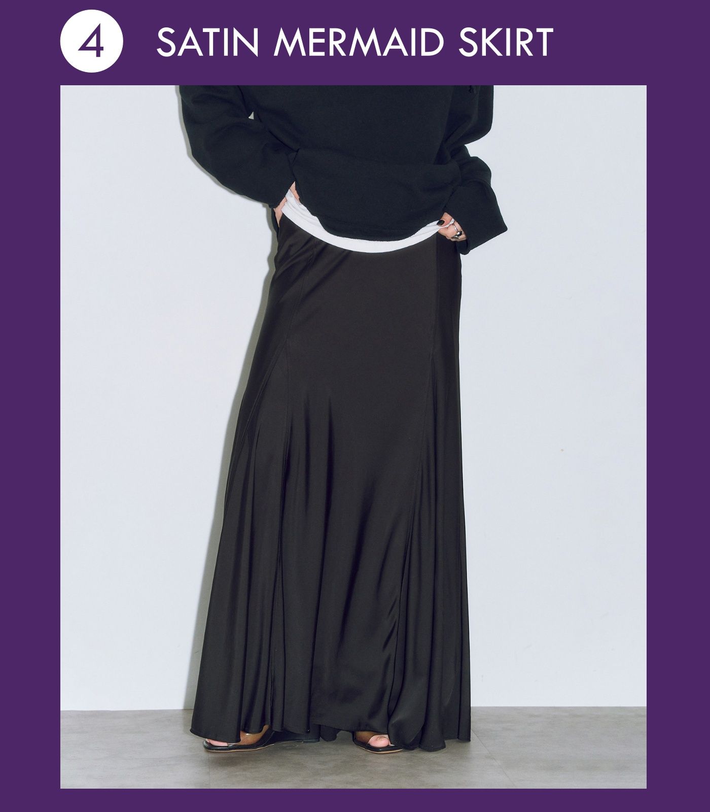 ドラマティックな装いが叶う、大人モードな艶スカート