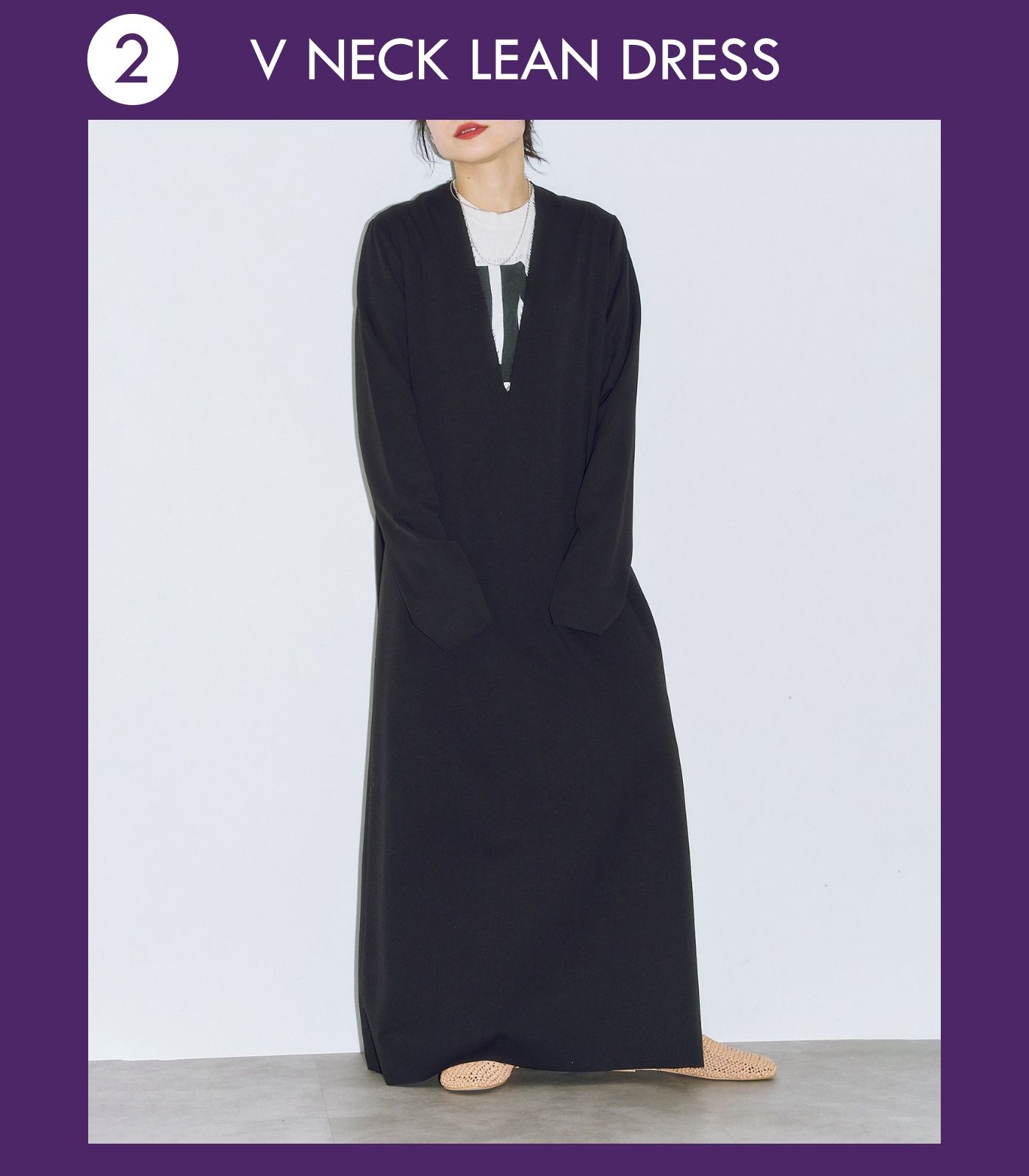 まっすぐのキレイ目モードなフォルムと、深めのVネックが女度を高める大人にも取り入れやすいデザイン。