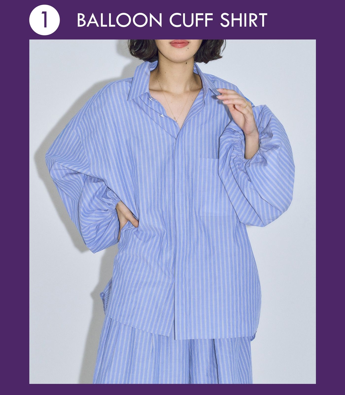 メンズライクな素材とサイジングに、丸みのあるバルーンスリーブという女性らしい要素を掛け合わせた、シャツでもブラウスでもない、新しい存在感が光るシャツ。