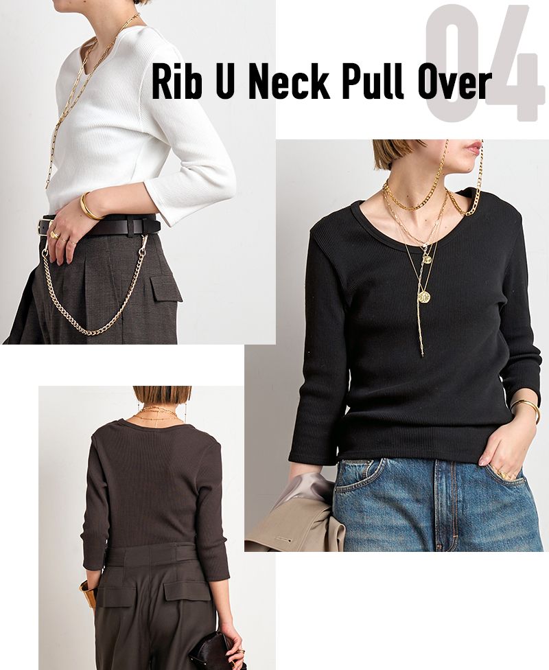 程よいツヤと張り感を出した、肌触りの滑らかな編地を使用。潔くデコルテの出る深いネックラインですが、カジュアルなアイテムとも相性良く着こなせるバランスの取れたデザインに仕上げました。