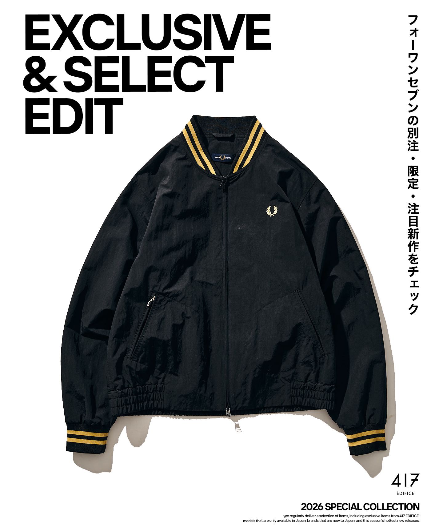 《EXCLUSIVE & SELECT EDIT 2026》では、417 EDIFICEの別注アイテムをはじめ、国内での取り扱いが限られるモデルや日本初上陸ブランド、そして今季注目の新作までをセレクトを定期配信!