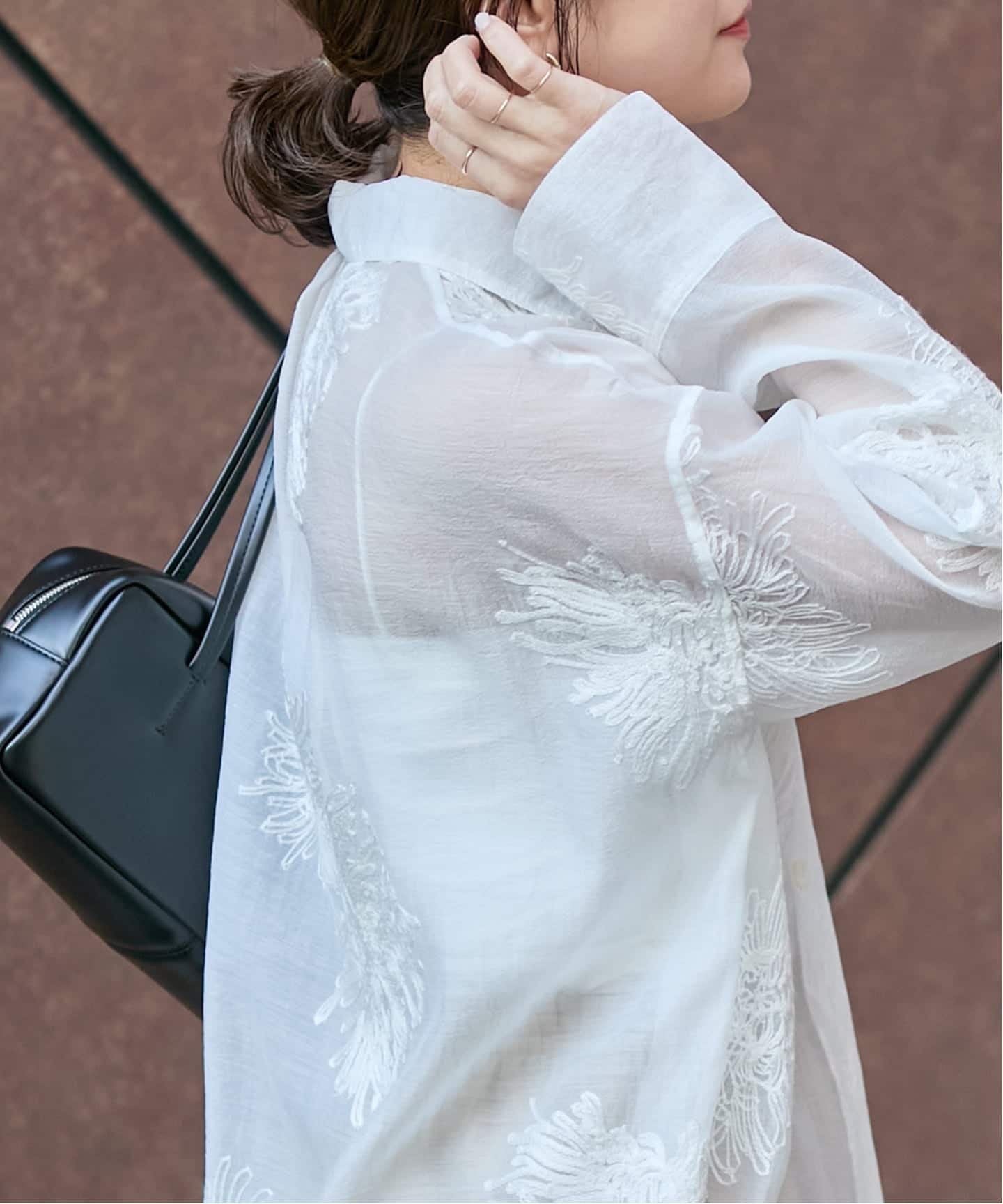 レースがトレンド感もあり普段のシャツスタイルを新鮮に引き立ててくれます。