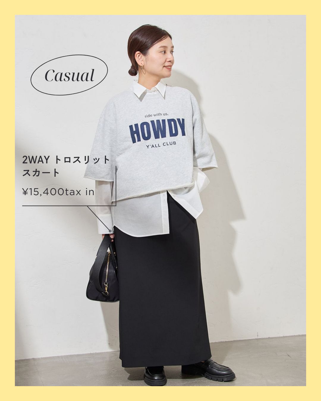 デイリー使いにスウェットのようなカジュアルアイテムとの合わせも◎