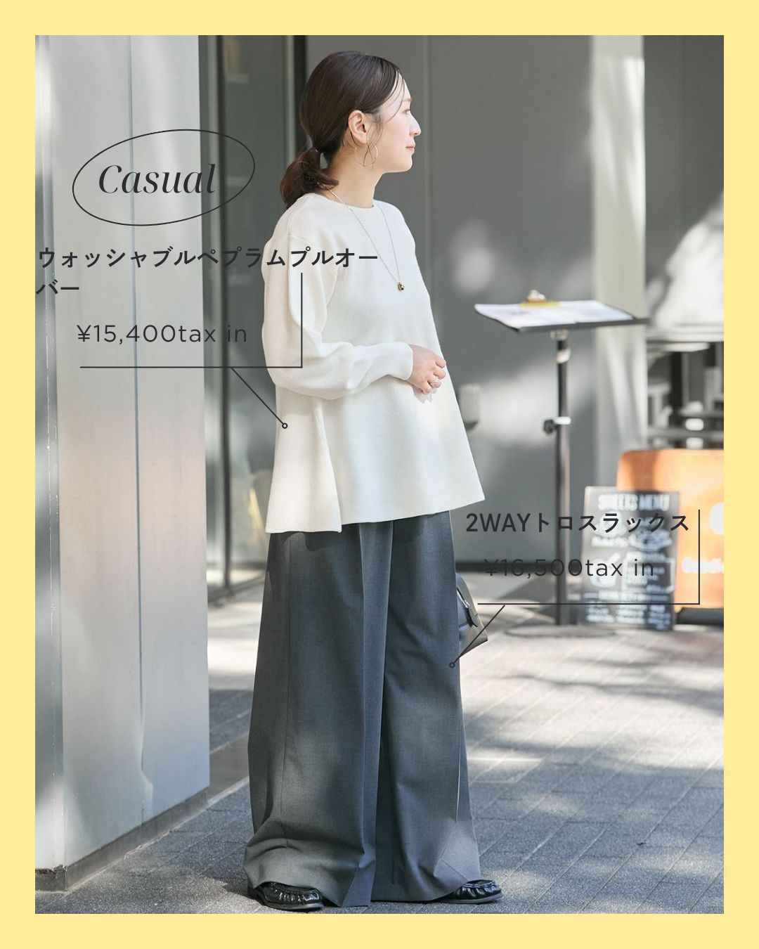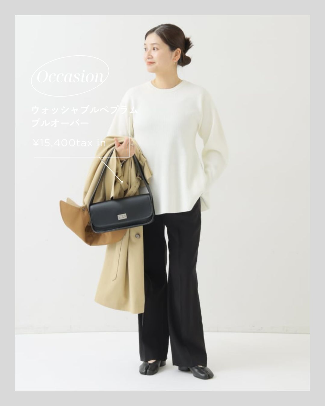 さりげないペプラムが女性らしくもカジュアルにマッチします〇