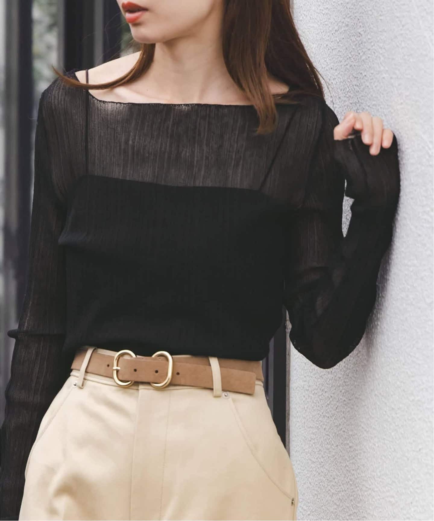 - 大人の着こなしに抜け感を与えるシアーニット -