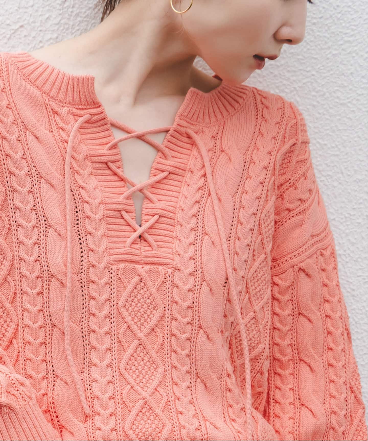 《WEB限定追加》レースアップリブニット