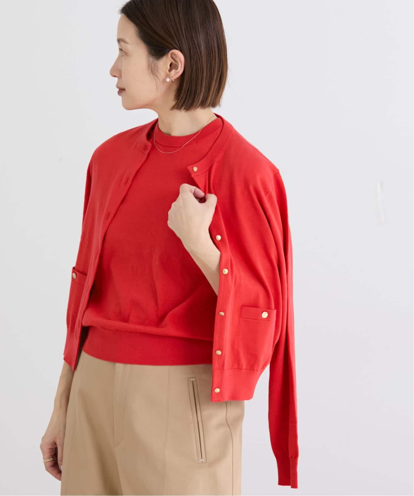 IENA別注のキャメルとレッドは、コーデの主役にも馴染ませ役にもなる絶妙カラー。