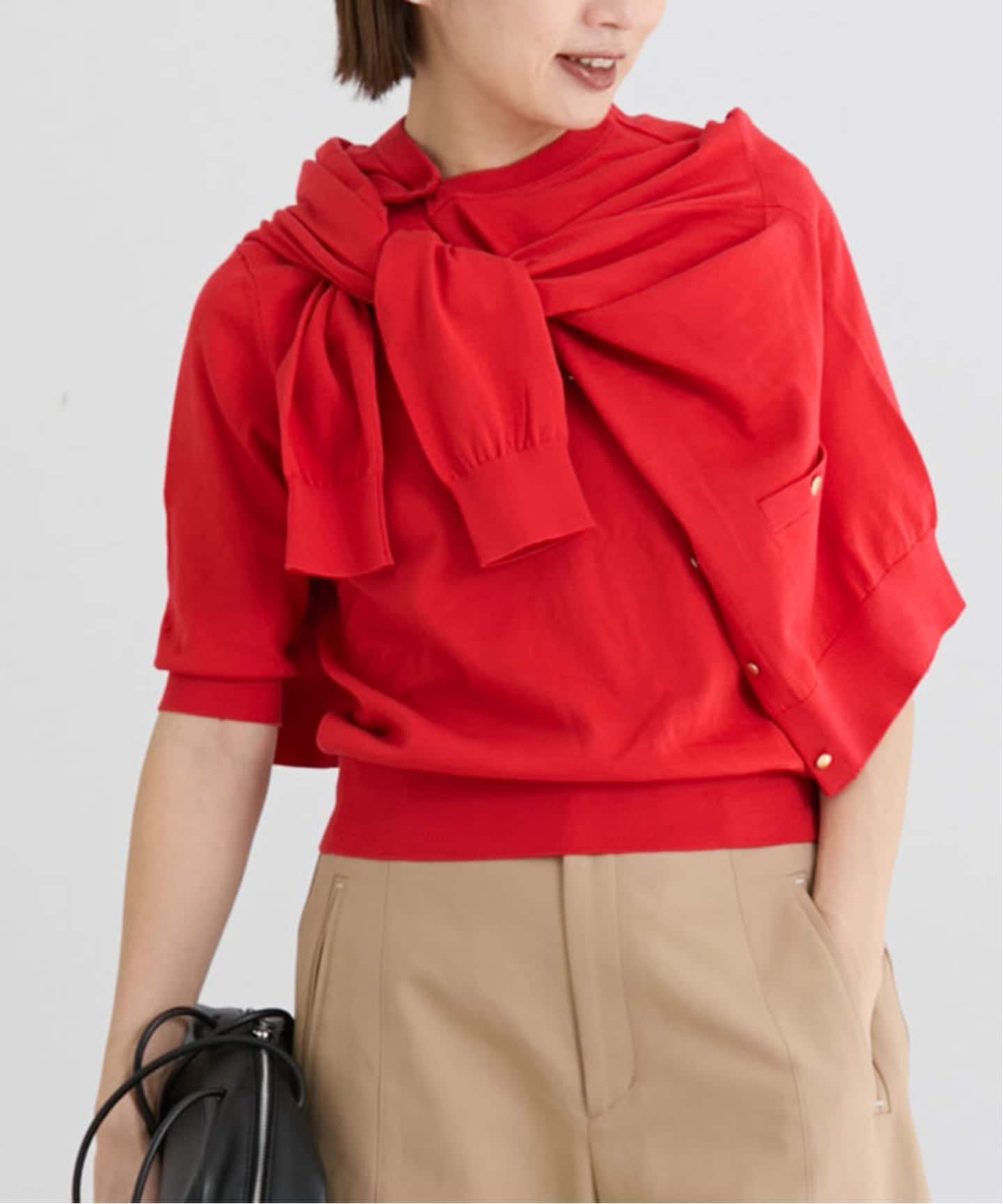 ストレッチ性のある柔らかな素材が扱いやすく、デイリーにも取り入れやすいのが魅力。