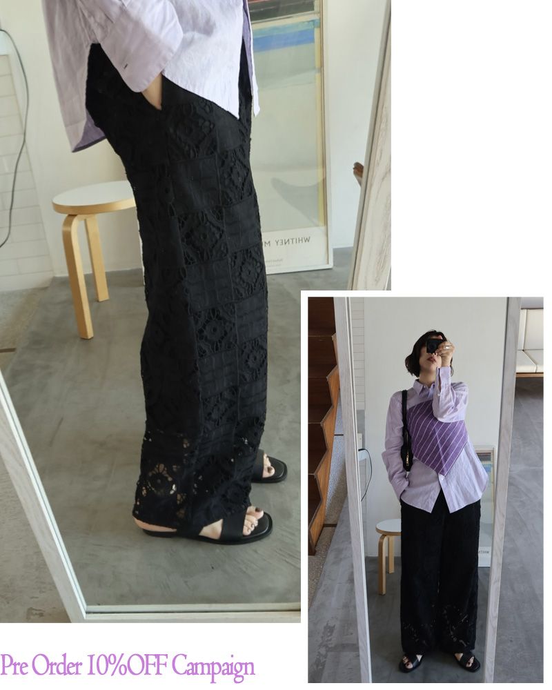 「タイルのような大ぶりの刺繍が目を惹くレースパンツ!イージーな履き心地もお気に入り。」